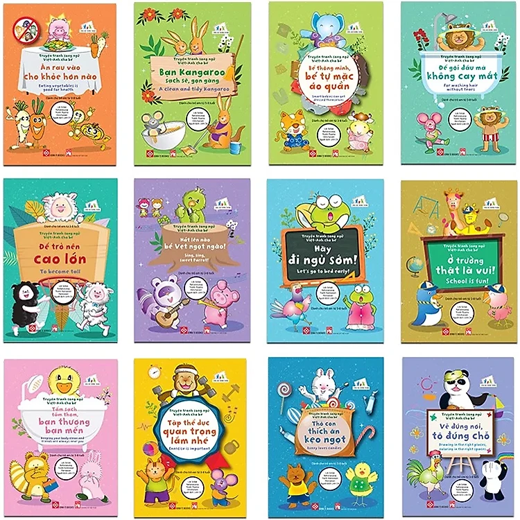 Bộ Truyện tranh song ngữ Việt - Anh cho bé gồm 12 tập là 12 câu chuyện được kể bằng tiếng Việt và tiếng Anh.