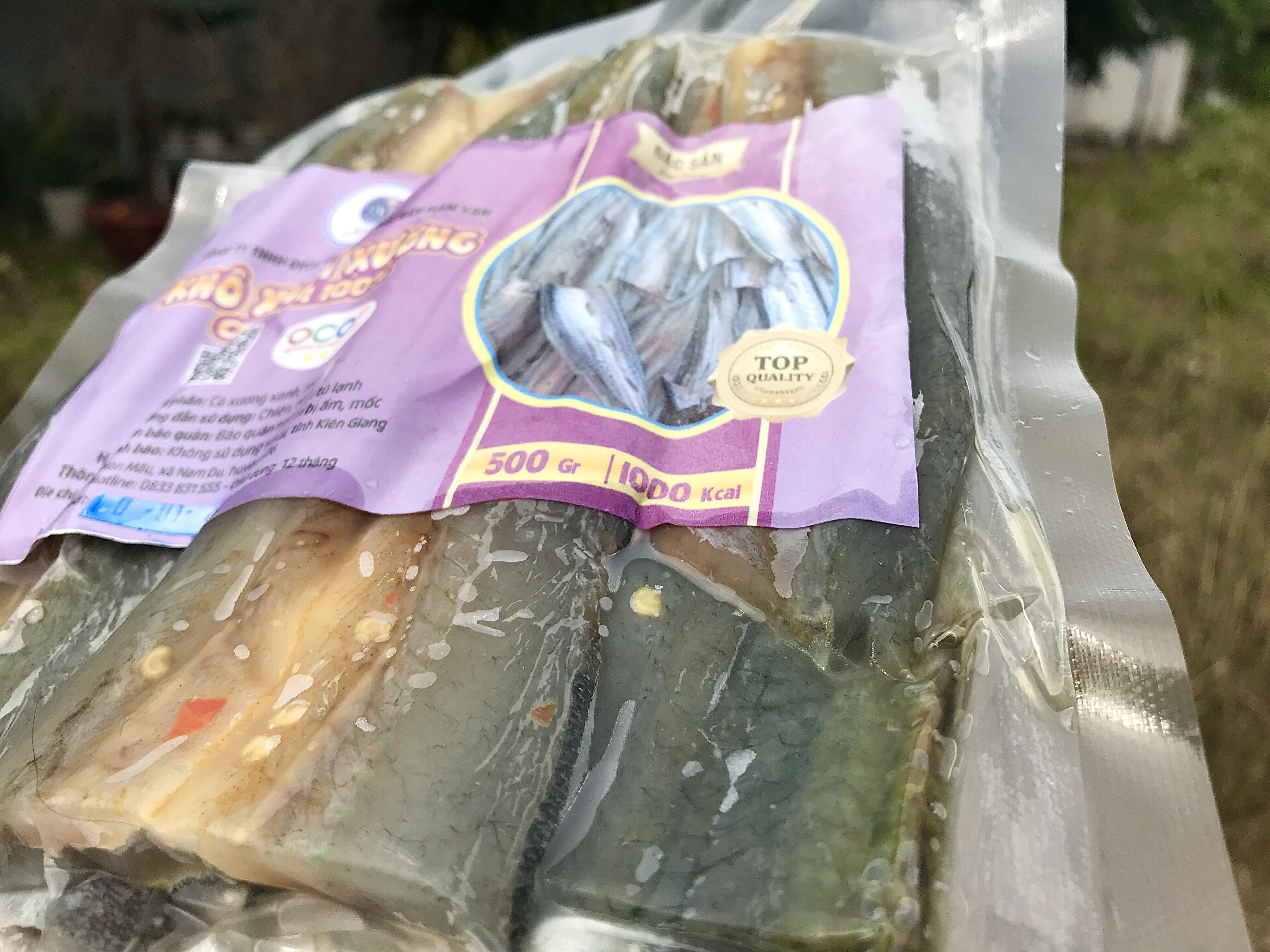 Khô cá xanh xương được làm từ cá xương xanh 100 hoà cùng với một ít muối và ớt Khi ăn sẽ có mùi vị mằn mặn cay cay ăn cùng với cơm rất ngon