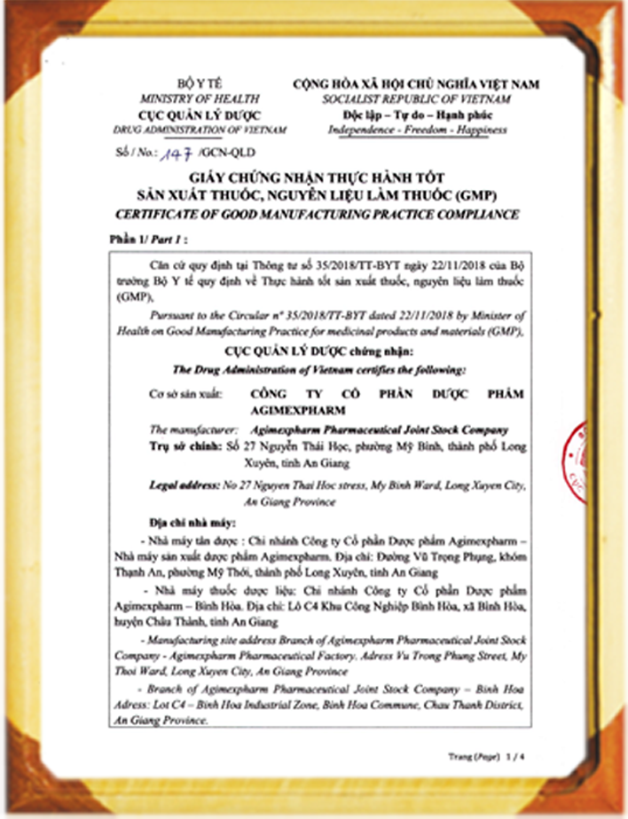 Chúng tôi hiểu rằng, chất lượng không chỉ là yếu tố sống còn, mà còn là thước đo niềm tin của người dùng. Chất lượng đạt chuẩn Châu Âu không đơn giản là một mục tiêu xa vời, mà là lời hứa về sự an toàn, hiệu quả và sự chăm sóc tận tâm đến từng chi tiết. Từng sản phẩm của Agimexpharm là kết tinh từ sự nghiên cứu nghiêm túc, áp dụng công nghệ tiên tiến và sự tận tụy của đội ngũ nhân lực xuất sắc.