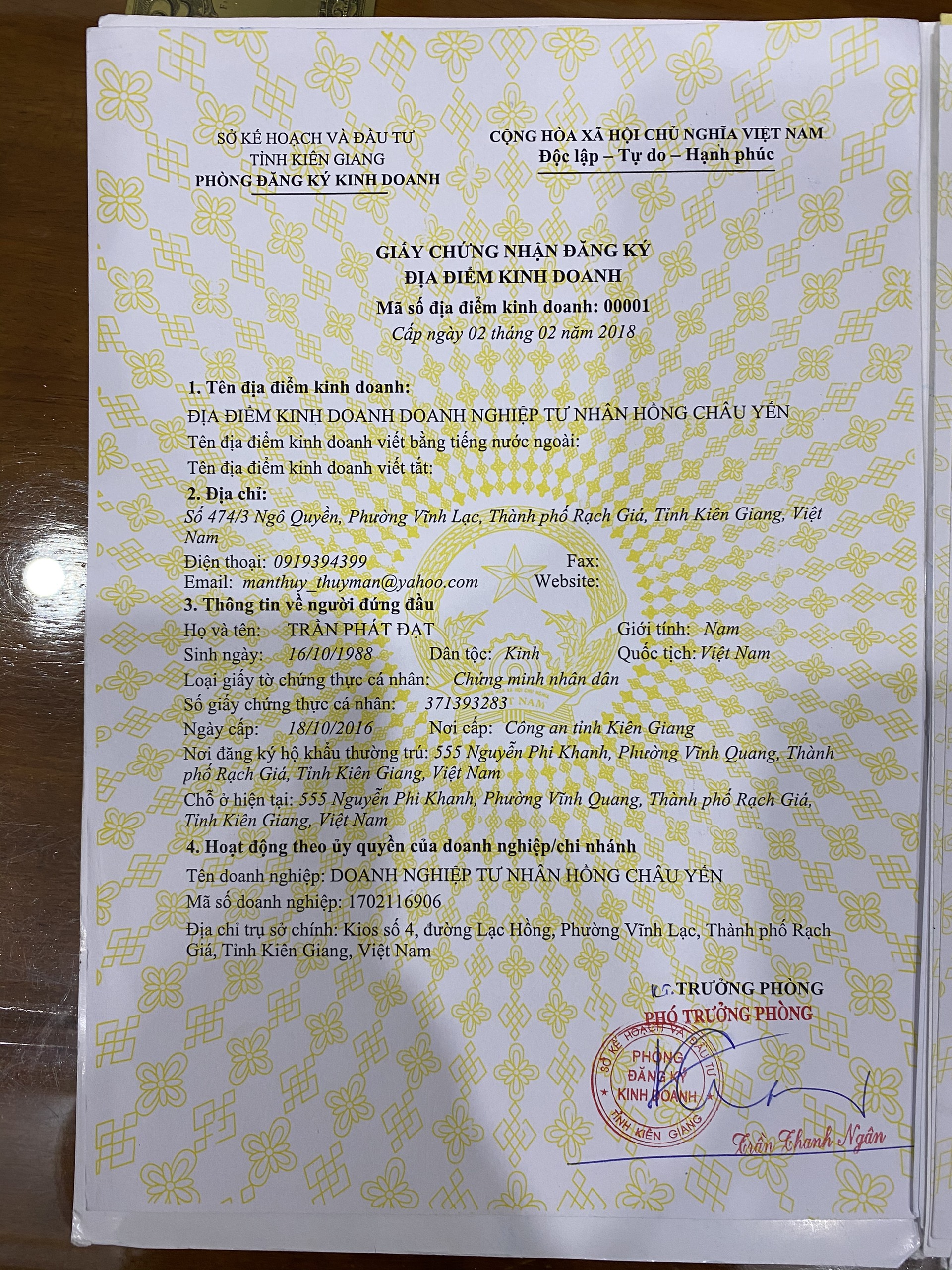 Địa chỉ: 312 Nguyễn Bỉnh Khiêm, Vĩnh Thanh, Rạch Giá, An Giang, Việt Nam