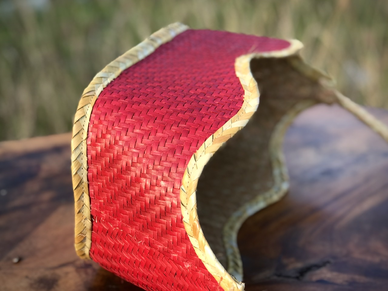 Thêm vào đó, thành của giỏ được thiết kế uốn lượn, làm toát lên vẻ mềm mại, uyển chuyển. Cùng với sự kết hợp màu sắc hài hòa giữa màu sắc truyền thống của cỏ bàng cùng màu đỏ bắt mắt tạo thêm sự hiện đại xen kẻ truyền thống cho giỏ.