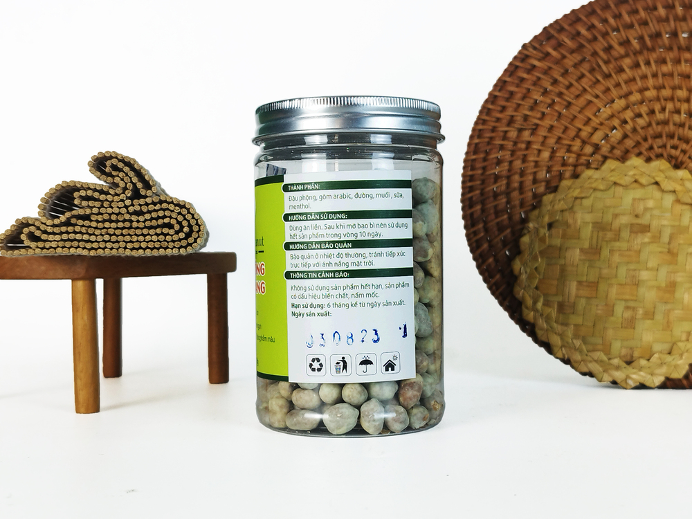 - Thành phần: đậu phộng, đường, muối, gôm arabic, sữa, menthol.