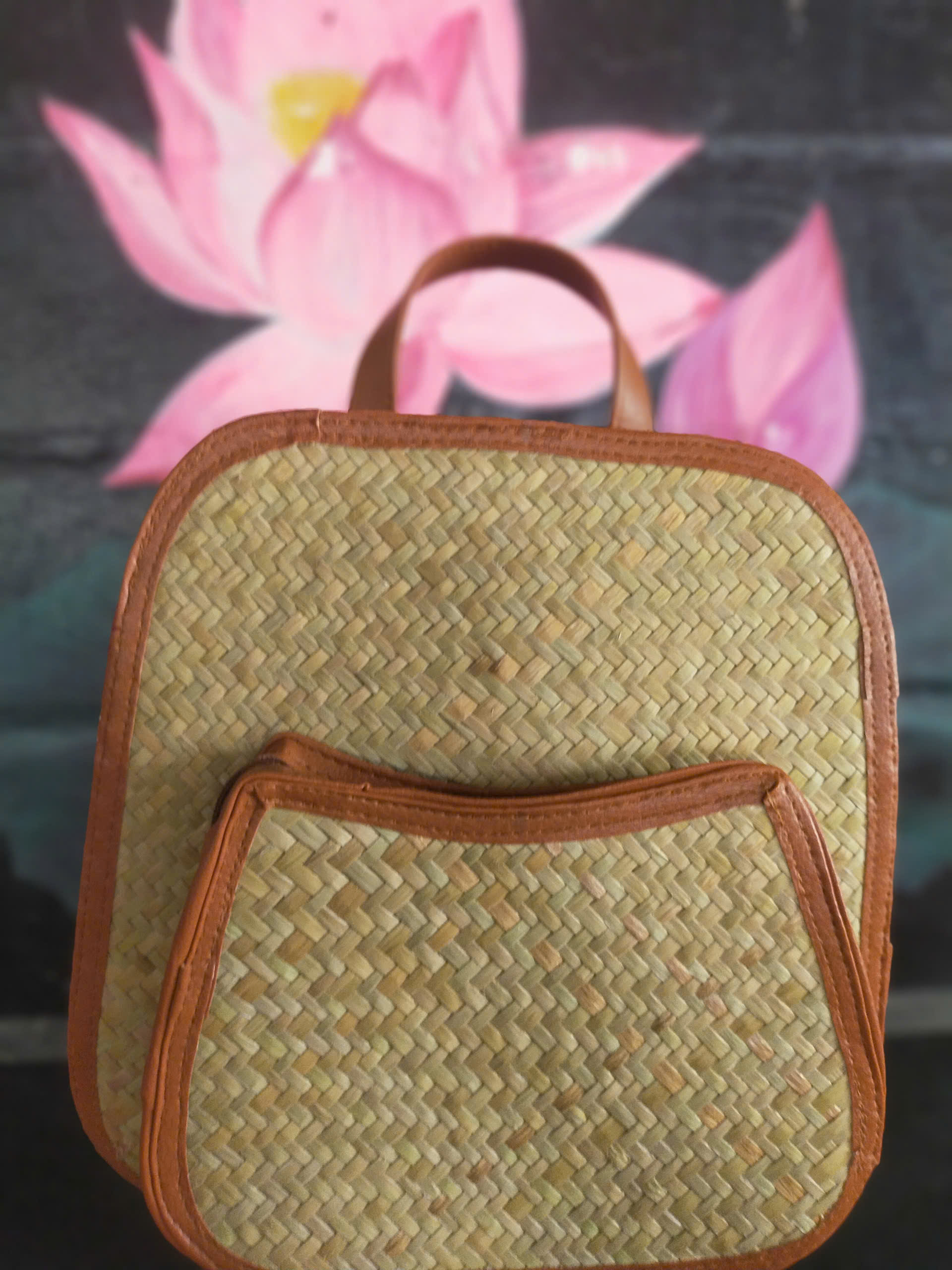 Balo Cỏ Bàng là một trong các sản phẩm nằm trong dòng balo làm từ cây cỏ bàng 100% ngoài tự nhiên, balo ép được các nghệ nhân đan từng cây cỏ bàng khô bằng thủ công nên các đường nét của balo vô cùng hài hoà và chắc chắn. Balo có 2 lớp.