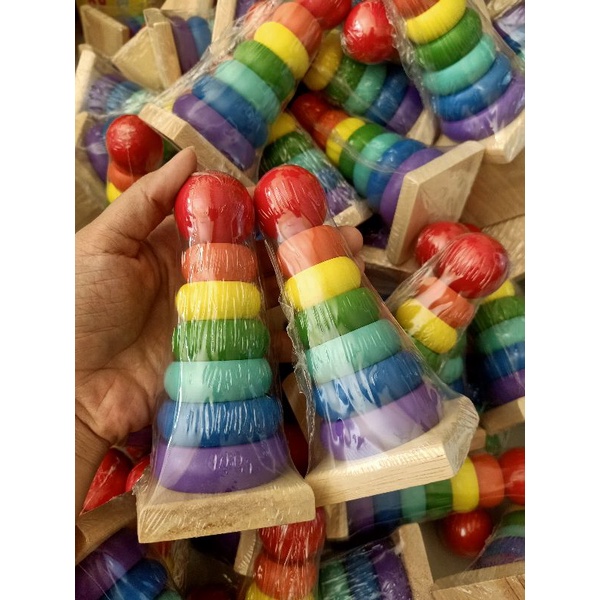 Tháp được thiết kế có nhiều vòng nhỏ, ba mẹ có thể dạy trẻ cách xếp theo thứ tự từ to đến nhỏ. Ngoài ra bé còn có thể học đếm từng vòng khi xếp