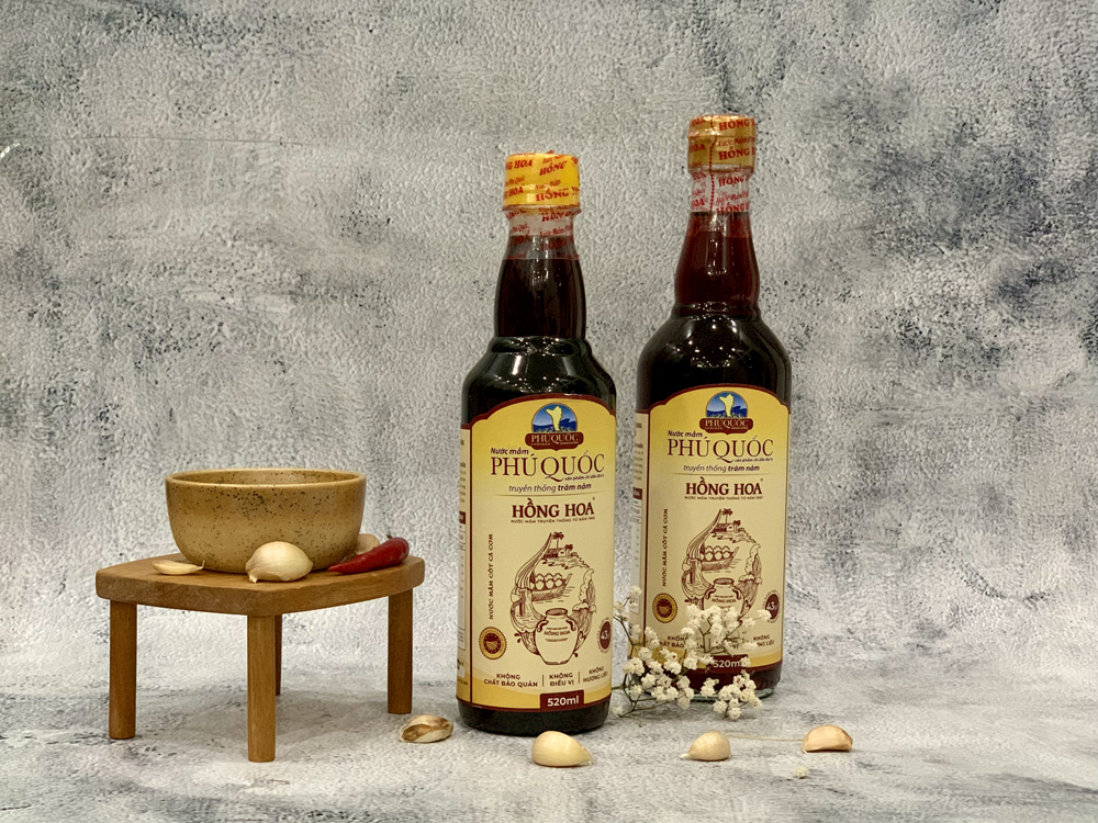 Nước Mắm Nhĩ Cá Cơm Truyền Thống Phú Quốc Hồng Hoa 43 Độ Đạm - Chai Thủy Tinh 520ml