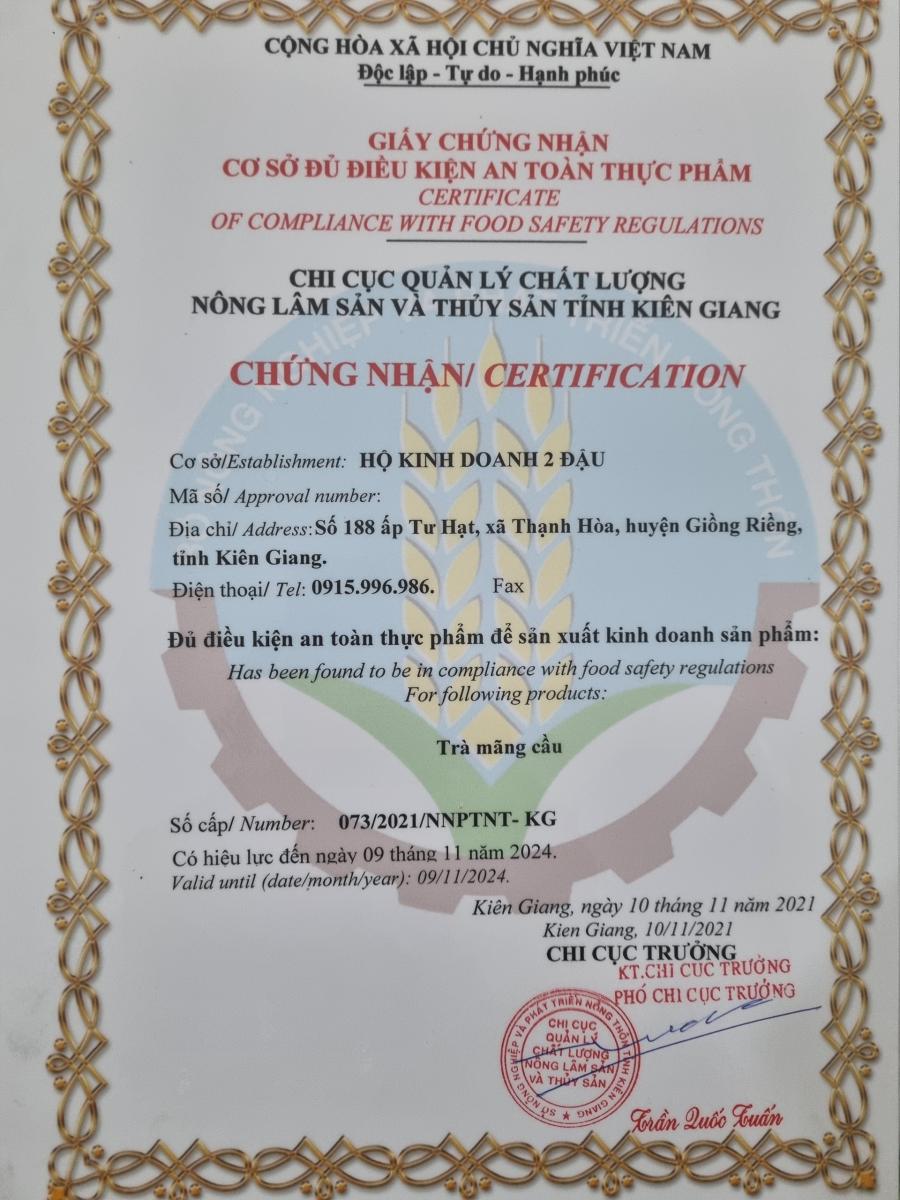 Đồng thời Cơ sở sản xuất Trà Mãng Cầu Xiêm 2 Đậu là một trong những đơn vị tiên phong của Tỉnh Kiên Giang đầu tư vào Chuyển đổi số toàn diện cho đơn vị để bắt kịp xu hướng phát triển của thị trường trong nước và thế giới.