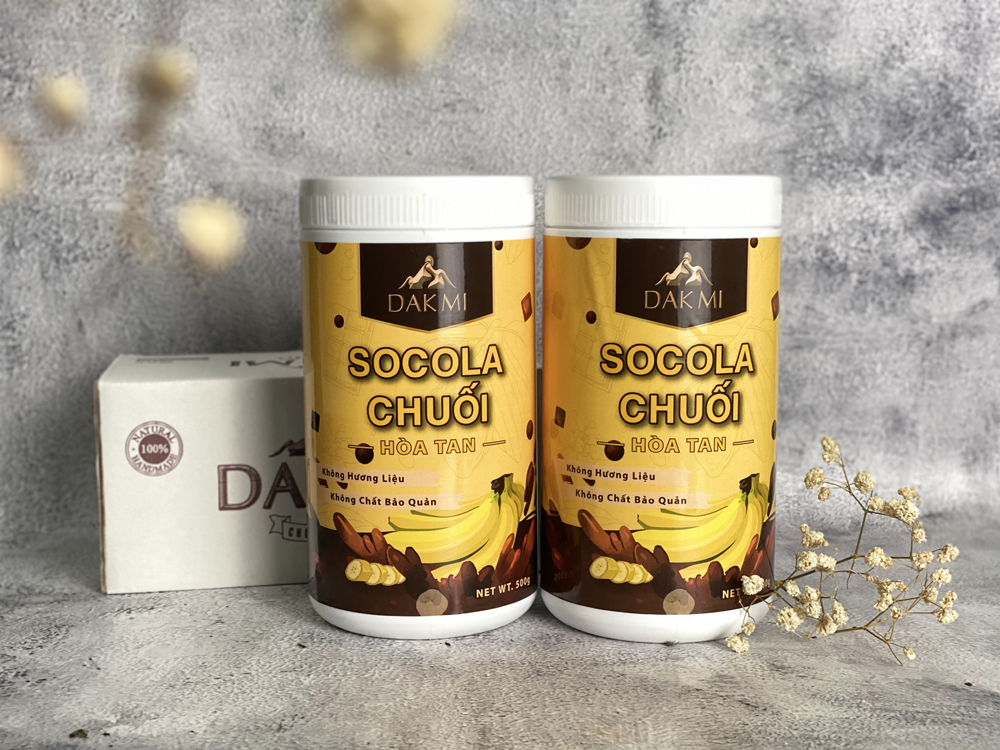 Bột Socola chuối hòa tan - 500g của DAK MI của damifram là một sản phẩm tiện lợi và ngon miệng cho những người yêu thích socola và hương vị chuối. Bạn có thể sử dụng bột Socola chuối hòa tan để pha nước nóng hoặc lạnh, làm bánh, làm kem, làm socola, v.v. Bột Socola chuối hòa tan của DAK MI có chứa bột cacao nguyên chất từ vùng Dakmil, một vùng nguyên liệu cacao và chuối nổi tiếng ở Việt Nam. Bạn có thể an tâm về chất lượng và an toàn thực phẩm của sản phẩm này. Bạn có thể mua bột Socola chuối hòa tan - 500g của DAK MI tại các cửa hàng bách hoá hoặc đặt hàng trực tuyến. Sản phẩm được tạo từ sự kếp hợp hoàn hảo của bột socola và bột chuối. Có thể nói đây là loại thức uống lần đầu có mặt trên thị trường. Sản phẩm hoàn toàn đến từ sự tự nhiên không hương liệu và không sử dụng chất bảo quản. Bạn cũng có thể tìm hiểu thêm về công dụng và cách dùng bột cacao nguyên chất và bột chuối.