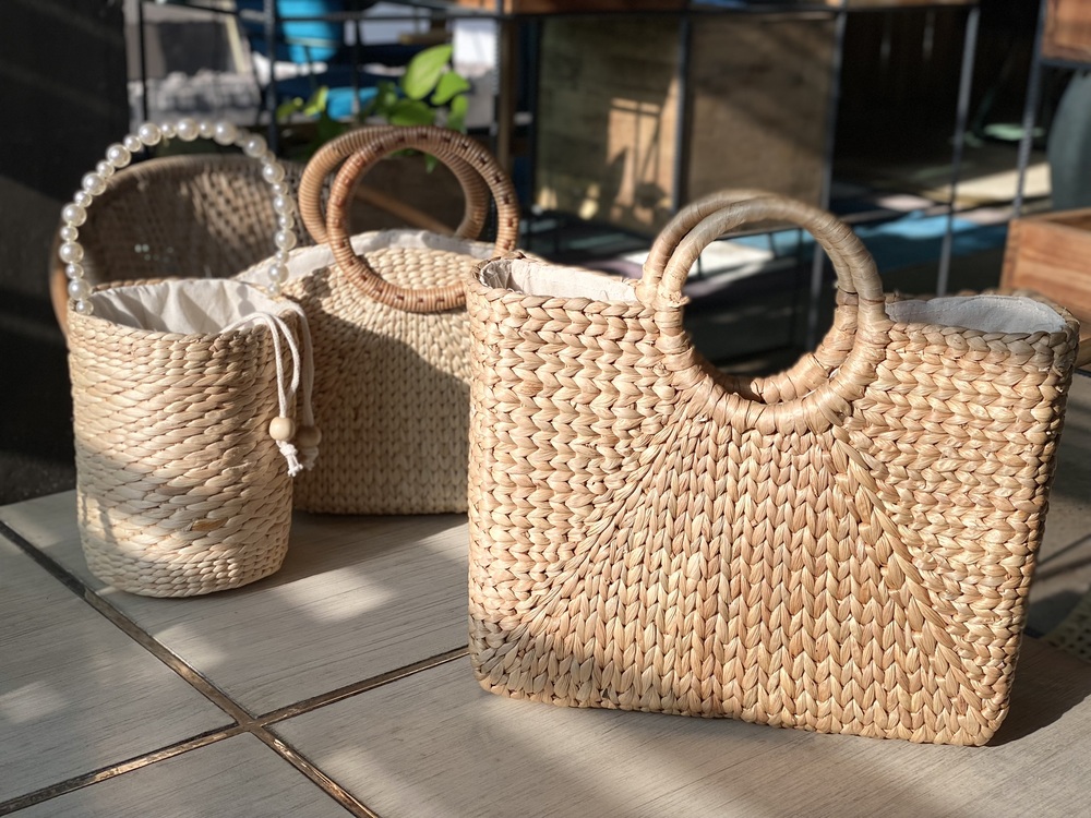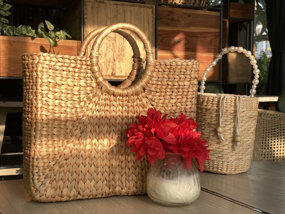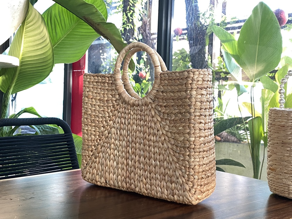 - Thành phần: Chất liệu sợi lục bình, có vải lót, khoá kéo, đan hoàn toàn thủ công.