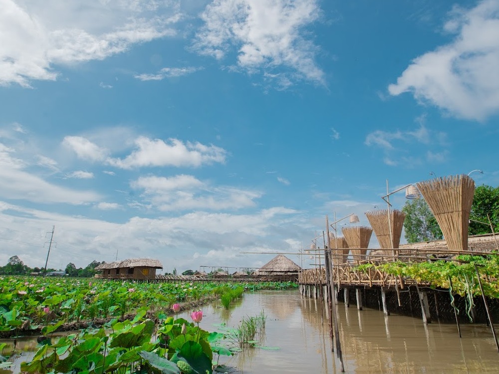 Với diện tích hơn 6.5ha bao quanh là những cánh đồng lúa đan xen với đồng hoa sen tạo nên một cảm giác yên ả, hoà huyện và yên bình giữa lòng thành phố tấp nập.