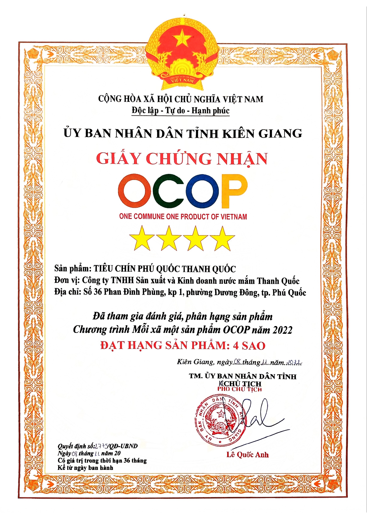 Đồng thời, nhờ sự quan tâm của các cấp lãnh đạo địa phương đến làng nghề truyền thống nên nước mắm Phú Quốc ngày càng được vươn xa. Năm 2012 nước mắm Phú Quốc đã được liên minh Châu Âu công nhận là sản phẩm đạt chỉ dẫn địa lý đầu tiên của Việt Nam, được UBND tỉnh Kiên Giang ban hành quy chế quản lý và sử dụng chỉ dẫn địa lý Phú Quốc cho nước mắm. Từ đó, nước mắm Phú Quốc nói chung, nước mắm Khải Hoàn nói riêng, đã trở thành sản phẩm ưa thích của du khách mọi miền, góp phần rất lớn trong sự tăng trưởng kinh kế của huyện nhà.