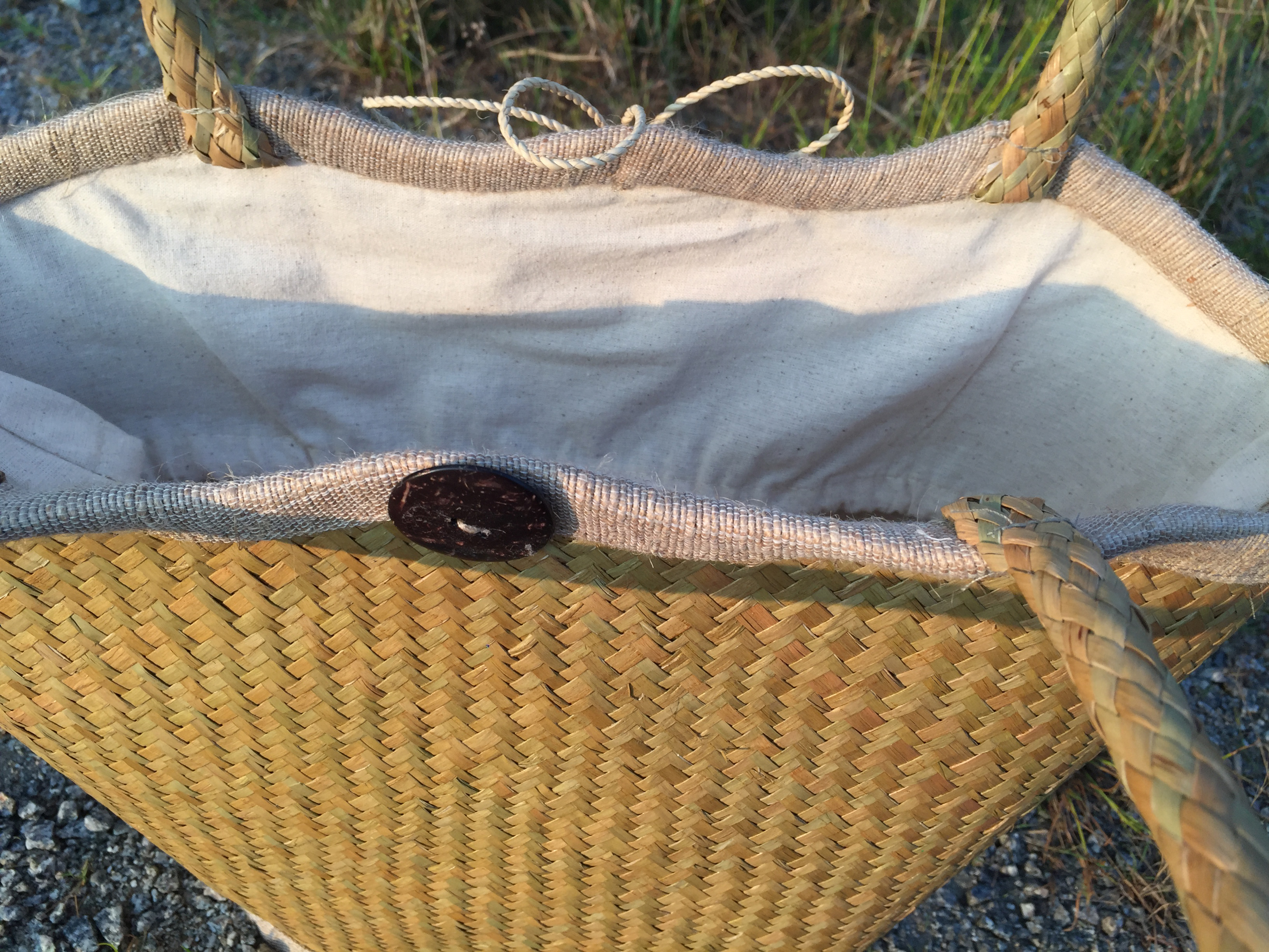 Giỏ được làm từ cây bàng, cói và lục bình tự nhiên. Được đan thủ công từ những nghệ nhân trong vùng