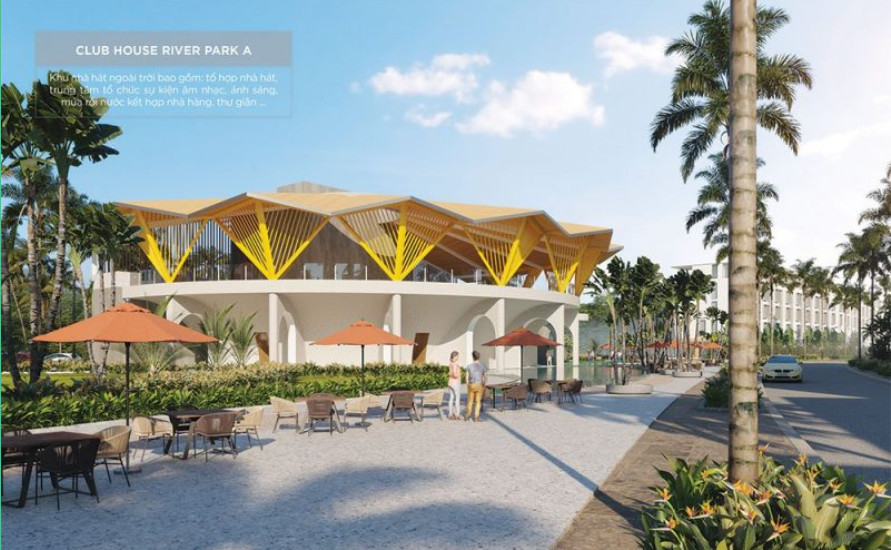 Club House River Park A: Khu nhà hát ngoài trời bao gồm: tổ hợp nhà hát, trung tâm tổ chức sự kiện âm nhạc, ánh sáng, múa rối nước kết hợp nhà hàng, thư giãn …