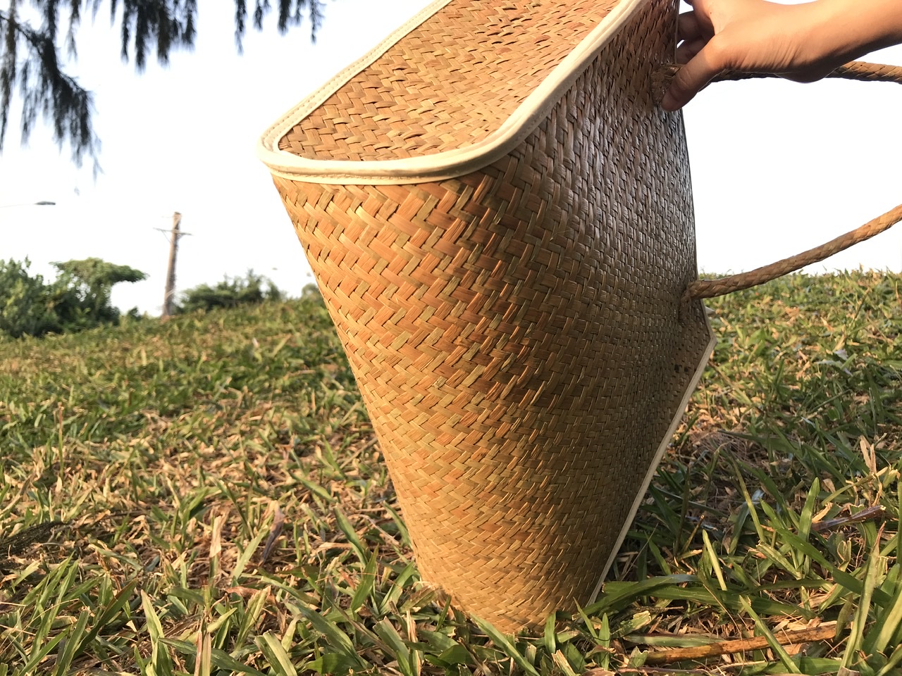 Giỏ được làm từ cây bàng, cói và lục bình tự nhiên. Được đan thủ công từ những nghệ nhân trong vùng