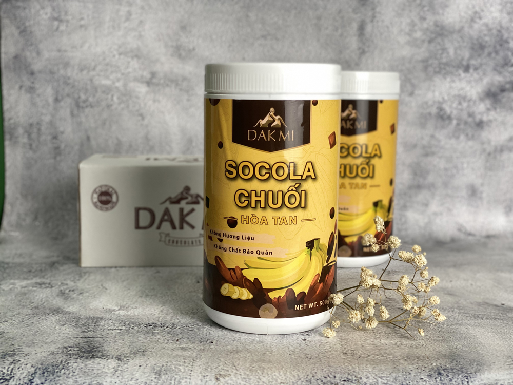 Bột Socola chuối hòa tan - 500g của DAK MI của damifram là một sản phẩm tiện lợi và ngon miệng cho những người yêu thích socola và hương vị chuối. Bạn có thể sử dụng bột Socola chuối hòa tan để pha nước nóng hoặc lạnh, làm bánh, làm kem, làm socola, v.v. Bột Socola chuối hòa tan của DAK MI có chứa bột cacao nguyên chất từ vùng Dakmil, một vùng nguyên liệu cacao và chuối nổi tiếng ở Việt Nam. Bạn có thể an tâm về chất lượng và an toàn thực phẩm của sản phẩm này. Bạn có thể mua bột Socola chuối hòa tan - 500g của DAK MI tại các cửa hàng bách hoá hoặc đặt hàng trực tuyến. Sản phẩm được tạo từ sự kếp hợp hoàn hảo của bột socola và bột chuối. Có thể nói đây là loại thức uống lần đầu có mặt trên thị trường. Sản phẩm hoàn toàn đến từ sự tự nhiên không hương liệu và không sử dụng chất bảo quản. Bạn cũng có thể tìm hiểu thêm về công dụng và cách dùng bột cacao nguyên chất và bột chuối.