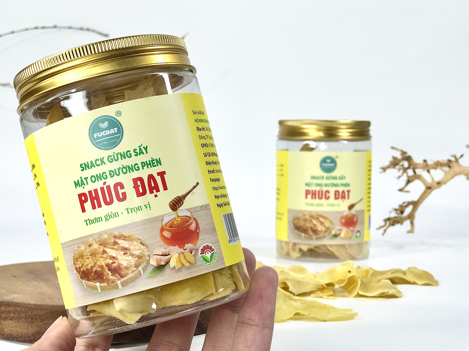 - Tên sản phẩm: Snack gừng sấy mật ong đường phèn