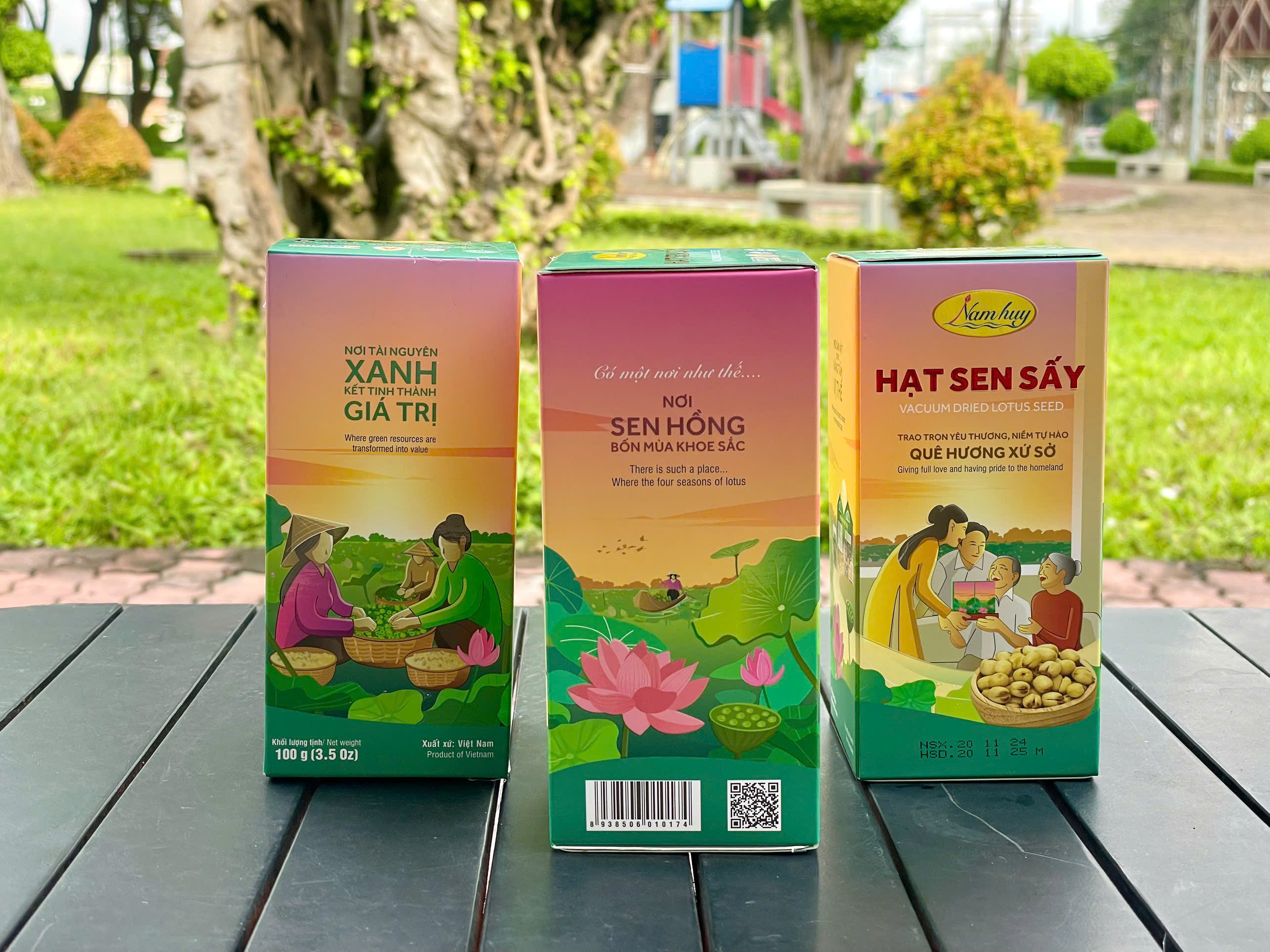Qua bao mùa mưa nắng, cây sen tồn tại cùng với người nông dân tay lắm chân bùn, thế nhưng giá trị kinh tế của sen không cao lắm.Từ thực tế trên, cùng hoài bão muốn vươn lên bằng chính nông sản sẵn có, ông Huỳnh Văn Hiệp đã mạnh dạn tìm hướng đi mới cho cây sen quê mình. Với niềm tin, sự quyết tâm, ý tưởng sáng tạo, ông đã thành công cho ra đời sản phẩm “Hạt sen sấy” mang thương hiệu Nam Huy. Sản phẩm chứa hàm lượng dinh dưỡng cao, chữa mất ngủ, làm đẹp da, chống lão hóa thích hợp cho cả người ăn kiêng .