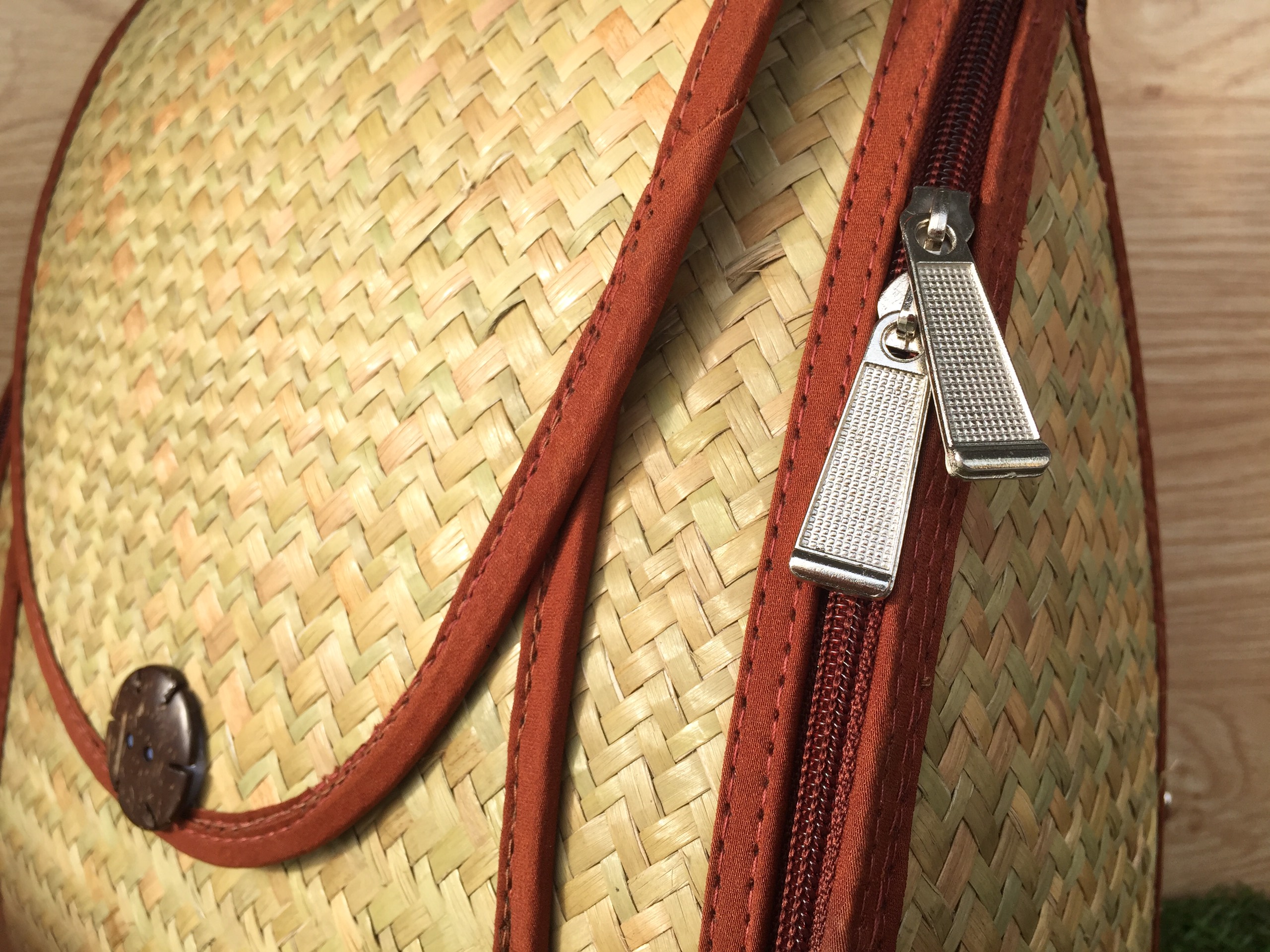 Balo Bàng là một trong các sản phẩm nằm trong dòng balo làm từ cây cỏ bàng 100% ngoài tự nhiên, balo ép được các nghệ nhân đan từng cây cỏ bàng khô bằng thủ công nên các đường nét của balo vô cùng hài hoà và chắc chắn. Balo có 2 lớp.