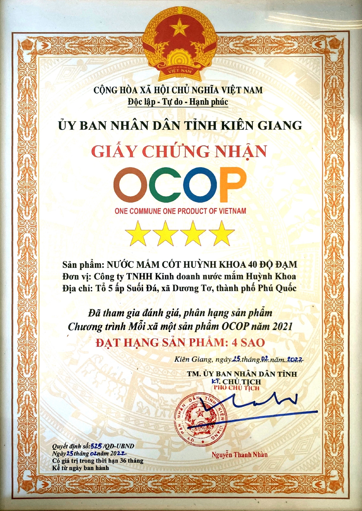 LNV - Nước mắm truyền thống Phú Quốc Huỳnh Khoa, sản phẩm truyền thống trăm năm được bảo hộ chỉ dẫn địa lý của Liên Minh Châu Âu – EU và 28 nước Châu Âu với bề dày lịch sử của Làng Nghề Truyền Thống hơn 200 năm. Nước mắm Phú Quốc Huỳnh Khoa là loại nước mắm không chỉ nổi tiếng tại Việt Nam mà còn được biết đến ở khắp nơi trên thế giới. “Vị ngon đến từ Đảo ngọc” đã tạo nên một nét đẹp văn hóa trong ẩm thực vô cùng ấn tượng trong mắt khách du lịch.