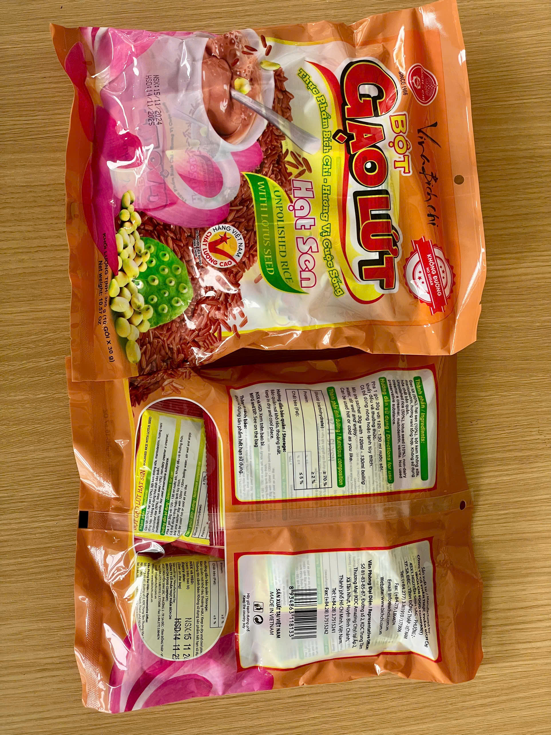 - Thành phần : Gạo lứt (50%), hạt sen (10%), bột kem, mantodextrin.
