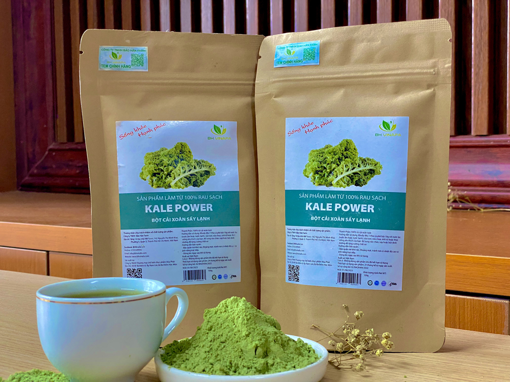 Bột cải xoăn sấy lạnh - Kale Power là một loại bột được sản xuất từ 100% rau sạch, an toàn và thân thiện với môi trường, ra đời bởi Công Ty TNHH Thương mại chế biến thực phẩm Hòa Phát.