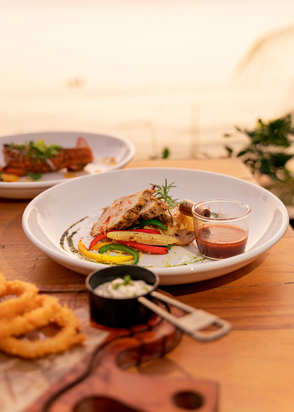 Sunset Beach Bar & Restaurant – quán bar bãi biển sôi động ngay trong khuôn viên resort, nơi Quý khách vừa nhâm nhi cocktail tuyệt hảo, thưởng thức ẩm thực ngon miệng vừa chiêm ngưỡng hoàng hôn rực rỡ trên đảo ngọc. Không gian náo nhiệt với nhạc EDM, DJ hàng đầu Phú Quốc và những màn múa lửa cuốn hút sẽ mang đến trải nghiệm giải trí khó quên.