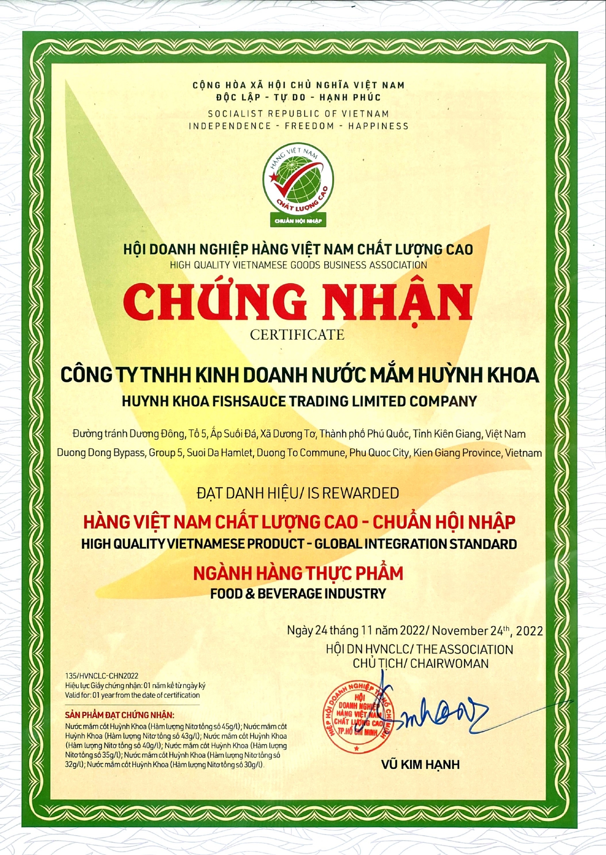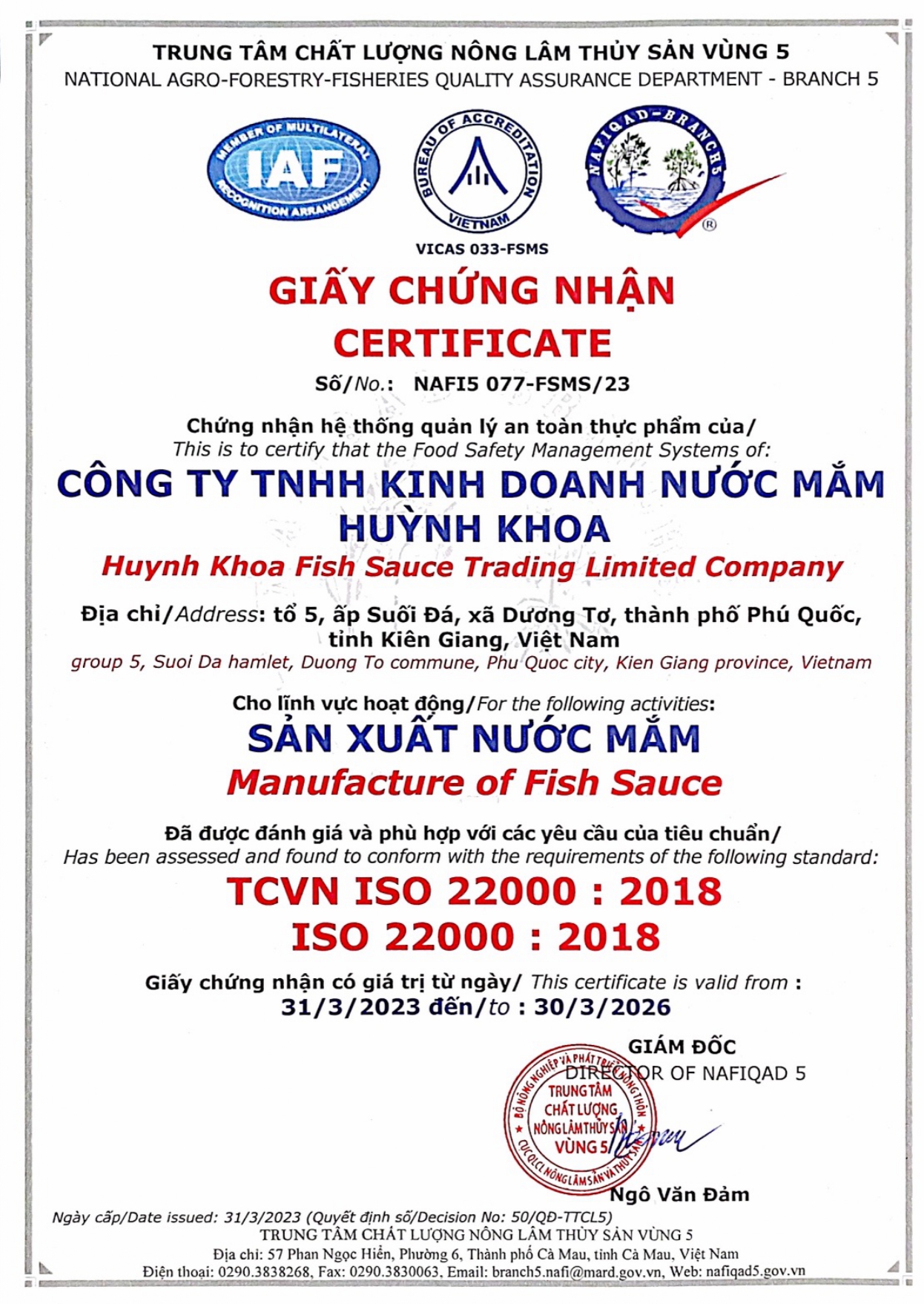 LNV - Nước mắm truyền thống Phú Quốc Huỳnh Khoa, sản phẩm truyền thống trăm năm được bảo hộ chỉ dẫn địa lý của Liên Minh Châu Âu – EU và 28 nước Châu Âu với bề dày lịch sử của Làng Nghề Truyền Thống hơn 200 năm. Nước mắm Phú Quốc Huỳnh Khoa là loại nước mắm không chỉ nổi tiếng tại Việt Nam mà còn được biết đến ở khắp nơi trên thế giới. “Vị ngon đến từ Đảo ngọc” đã tạo nên một nét đẹp văn hóa trong ẩm thực vô cùng ấn tượng trong mắt khách du lịch.