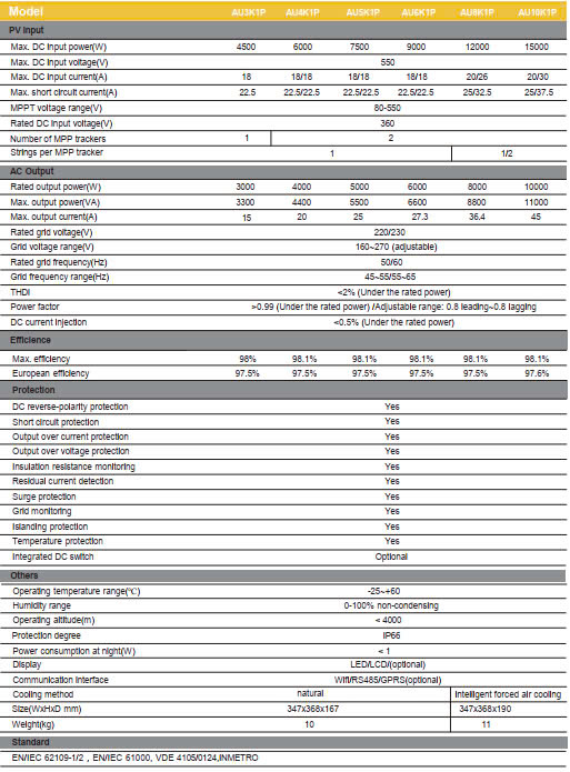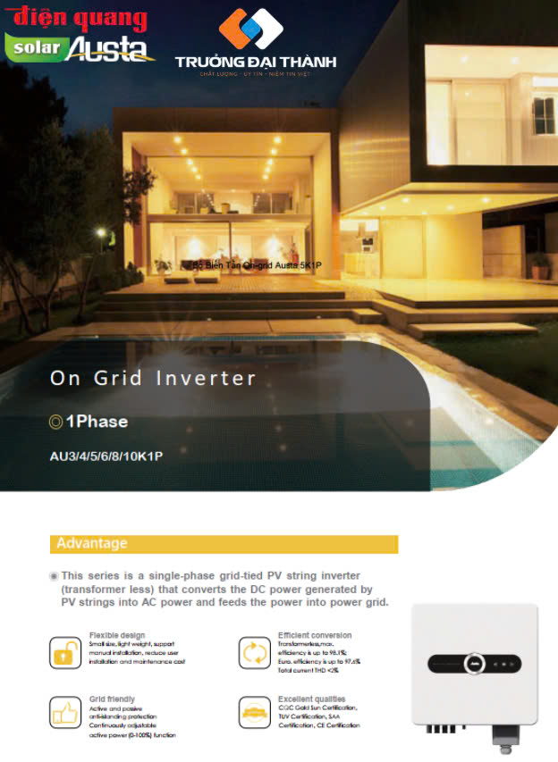 Bộ Biến Tần On-grid Austa 10K1P (1 pha, 10kWp)