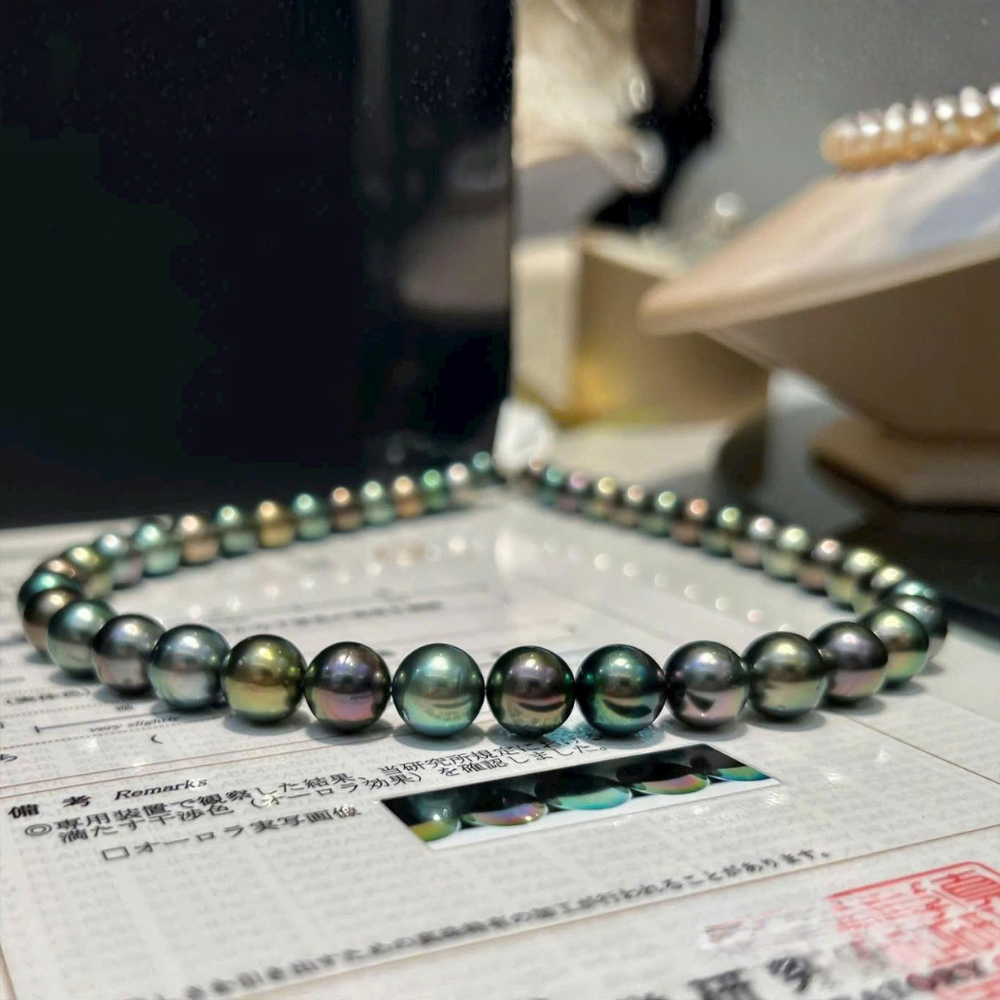 Nổi tiếng với vẻ đẹp sang trọng và sắc đen huyền bí, chuỗi ngọc trai Tahiti là trang sức cao cấp được tạo ra từ loài trai môi đen (Pinctada margaritifera) ở các đảo Polynesia thuộc Pháp. Chúng có ánh màu đa dạng và được giới mộ điệu săn đón.