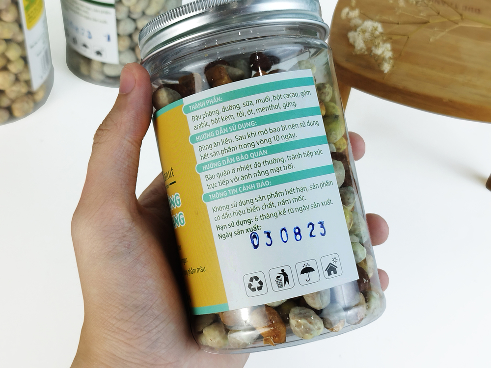 - Thành phần: đậu phộng, đường, sữa, muối, bột cacao, gôm arabic, bột kem, tỏi, ớt, menthol, gừng.