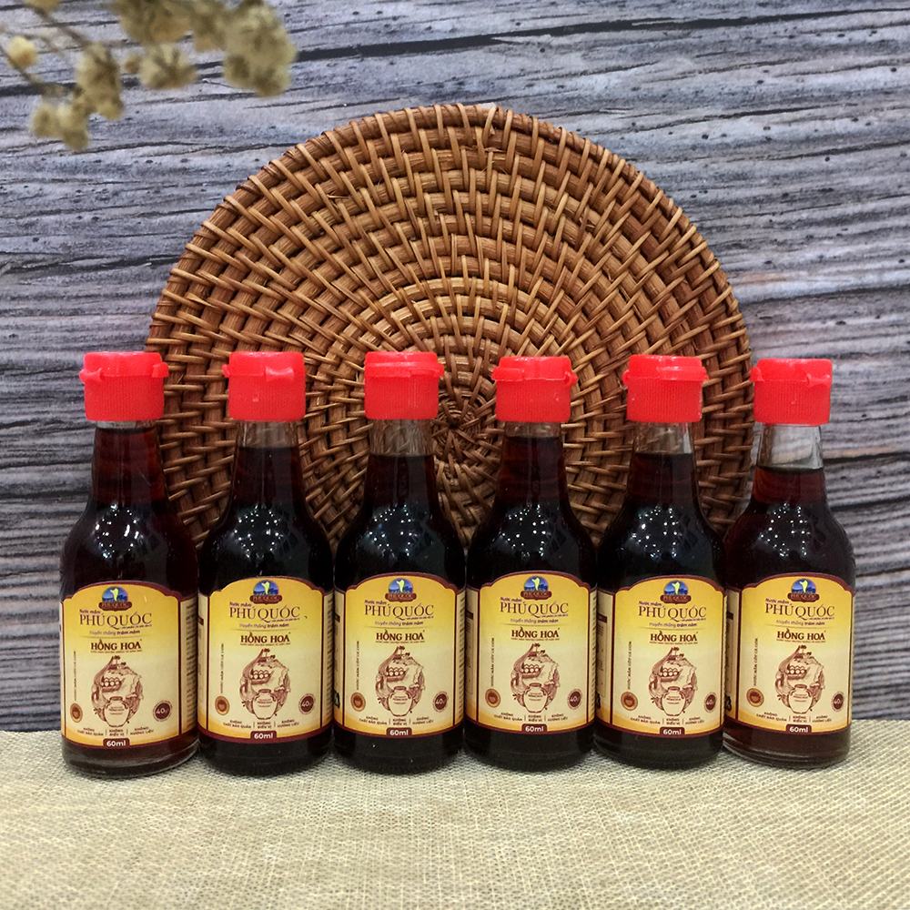 Nước Mắm Nhĩ Cá Cơm Truyền Thống Phú Quốc Hồng Hoa 40 Độ Đạm - Hộp 6 Chai Thủy Tinh 60ml