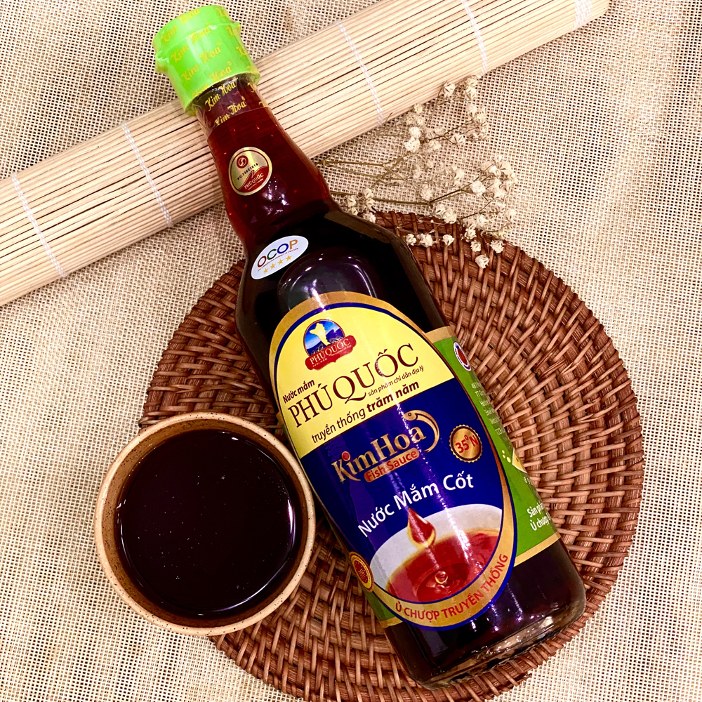 Nước mắm Kim Hoa là dòng nước mắm “Cốt” đặc biệt được ủ chượp theo phương pháp truyền thống với nguồn nguyên liệu là cá cơm thiên nhiên đến từ vùng biển Phú Quốc. Từng giọt nước mắm Kim Hoa đã được chắt lọc ra từ những nguồn nguyên liệu tốt nhất.