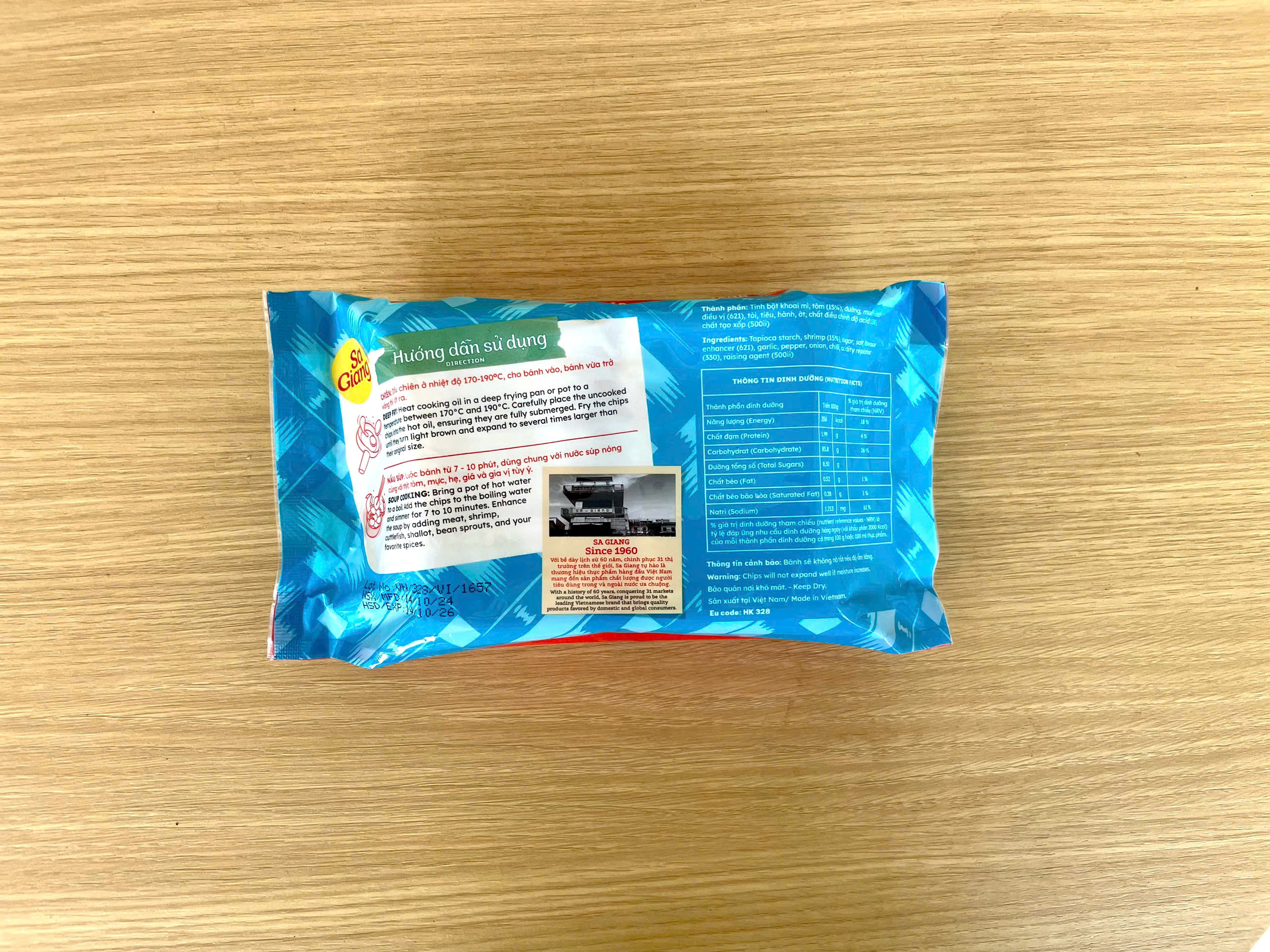 - Thành phần: Tinh bột khoai mì (có chứa sulfite E223), 15% tôm, đường, muối, tỏi, bột ngọt, tiêu, hành, ớt…