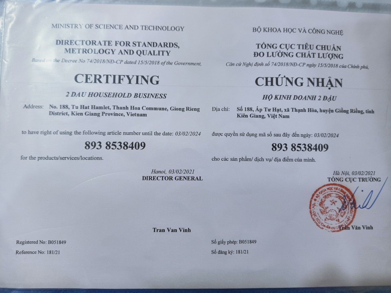 Trong năm 2021, sản phẩm "Trà mãng cầu xiêm 2 Đậu" đã được chọn là Sản phẩm Công nghiệp Nông thôn Tiêu biểu cấp Huyện, và đạt chứng nhận sản phẩm OCOP 3 sao cấp tỉnh.