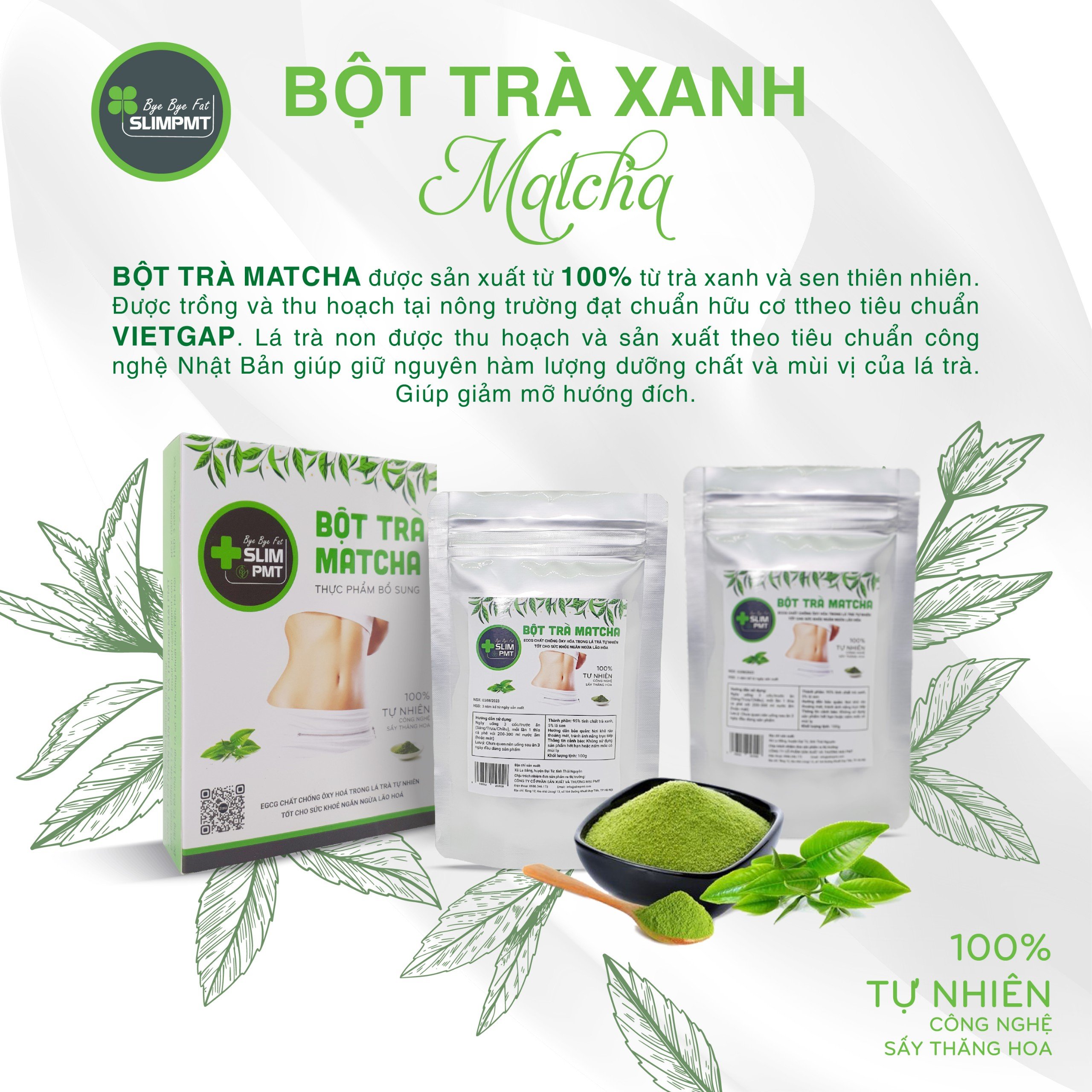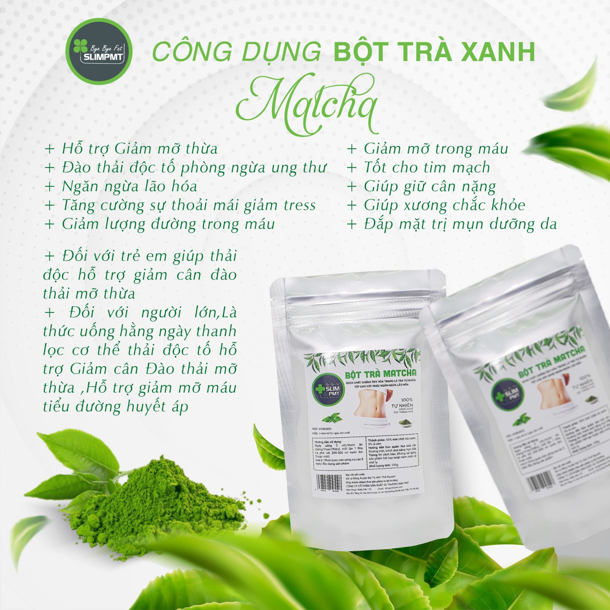 Sản phẩm bột trà xanh là thực phẩm bổ sung, có công dụng giảm mỡ thừa, đào thải độc tố ..