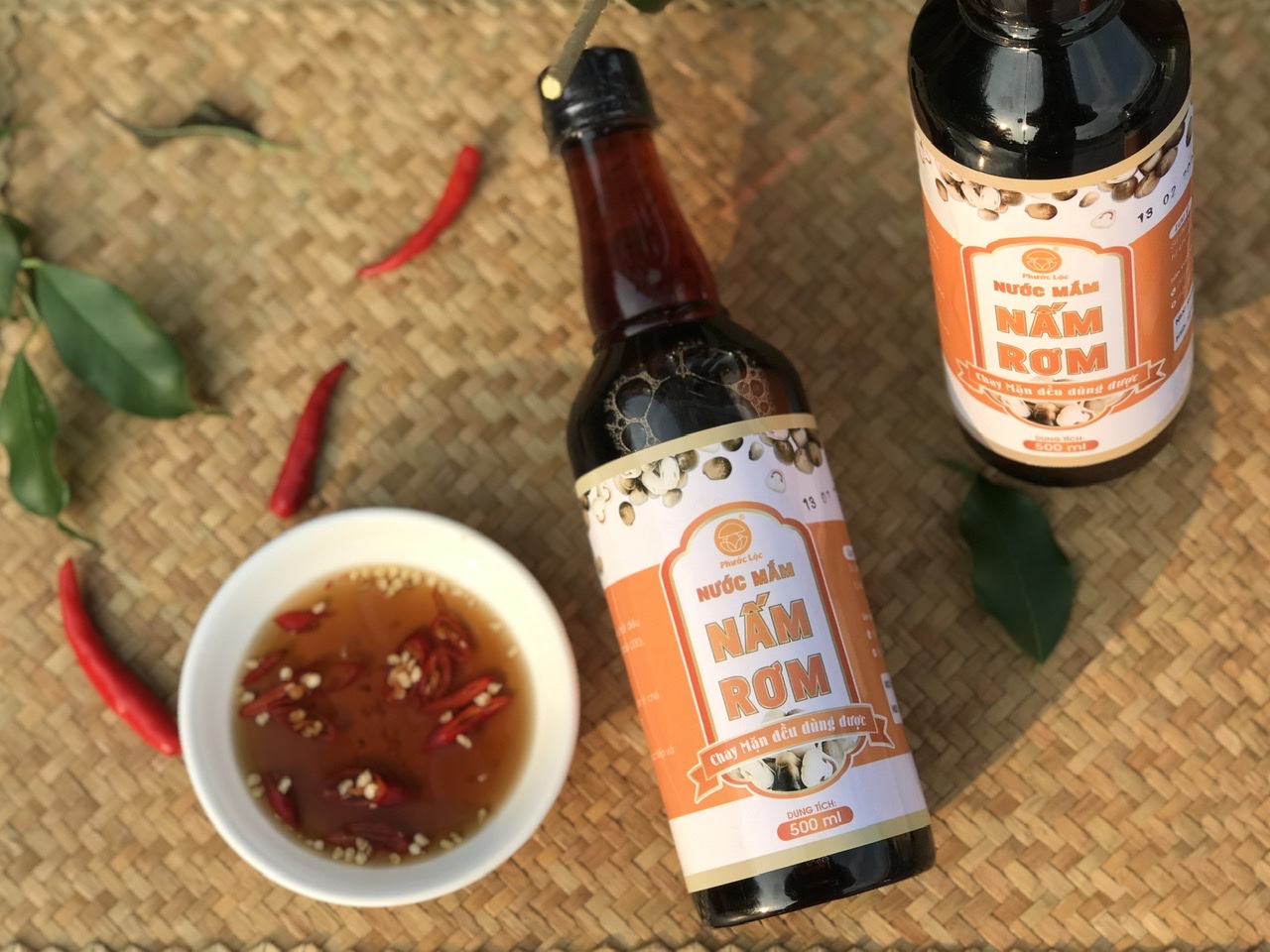 Nước mắm nấm rơm vốn được phát triển theo mong muốn khai thác hết tiềm năng từ món ăn quen thuộc của người Việt. Nhận thấy giá trị dinh dưỡng của cây nấm rơm mang lại cho người sử dụng rất cao nhưng lại chưa được khai thác tốt. Do đó, nước mắm nấm rơm đã ra đời, nước mắm được làm từ nước cốt nấm rơm, vốn được tuyển chọn kỹ nên hương vị của nước mắm rất thanh, không có vị hắc, màu sắc trong trẻo, không bị đục. Đây cũng chính là một trong các sản phẩm mà người ăn chạy hay ăn mặn đều có thể sử dụng được, rất tiện lợi.