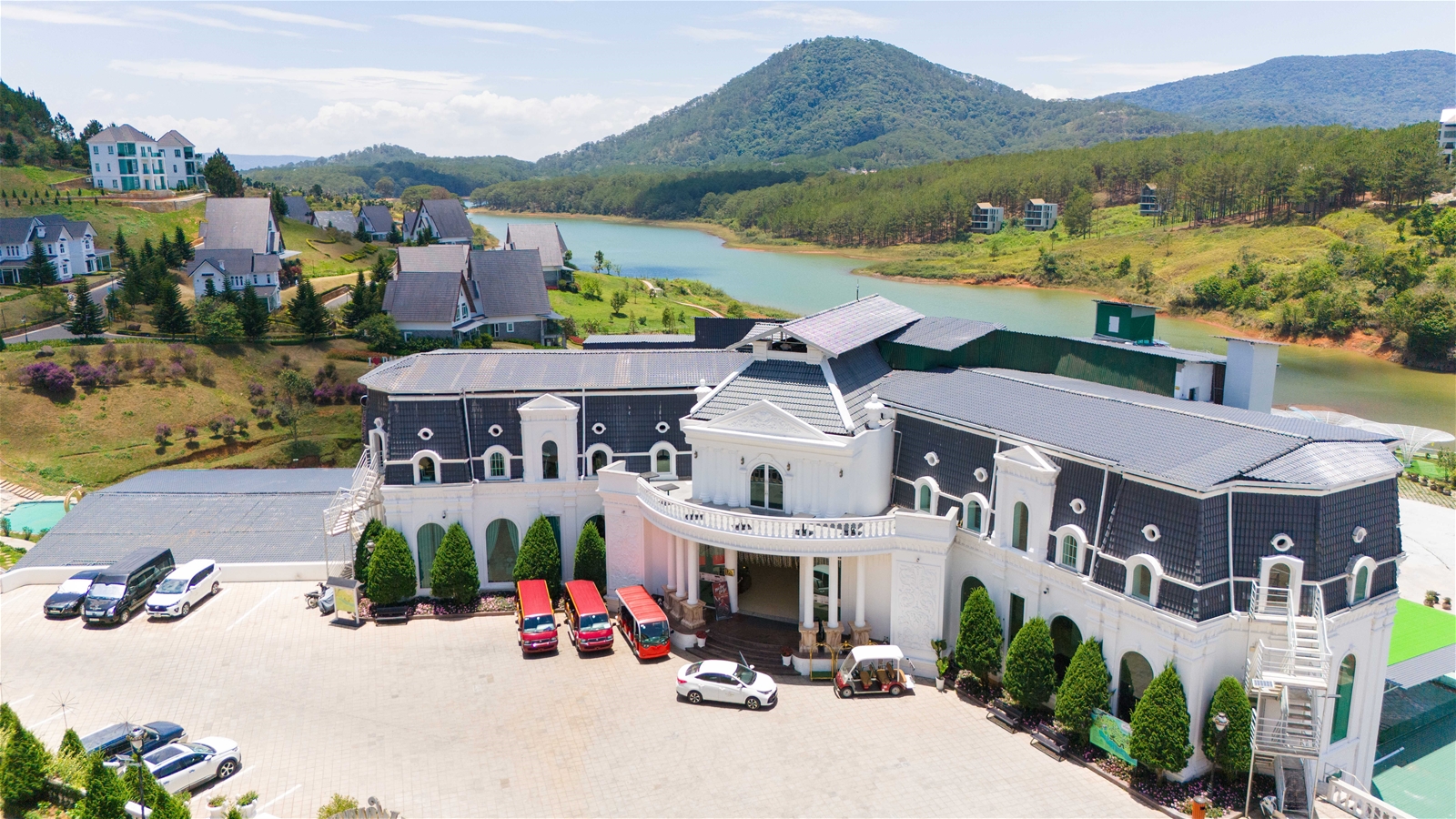Often described as a charming European-inspired village nestled in the heart of Da Lat, Dalat Wonder Resort is gracefully set within the Tuyen Lam Lake National Tourism Area. Surrounded by tranquil waters, rolling pine-covered hills, and poetic natural scenery, the resort offers a serene retreat where romance and refinement meet.
