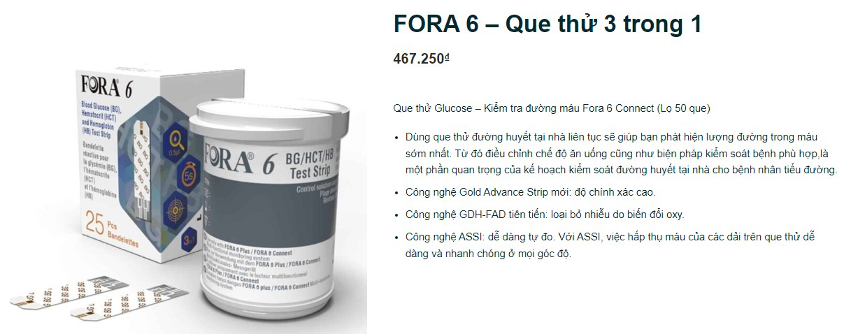 - Giúp đo lường 6 chỉ số liên quan đến bệnh tiểu đường, giúp bạn kiểm soát đường huyết, mỡ máu, acid uric, xeton, Hematocrit (HCT) và Hemoglobin (HB).