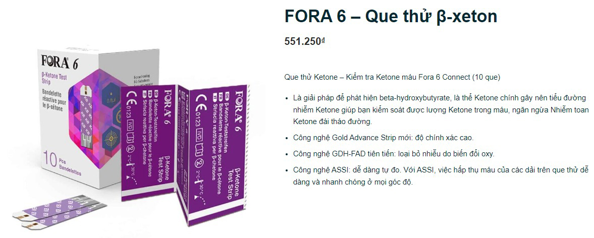 - Cảnh báo mức ketone bất thường (≥ 240mg/dL / 13.3mmol/L) tức thì.