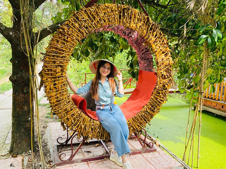 Với phong cảnh vườn cây trái và sông nước hữu tình, bên cạnh đó vườn còn bố trí những tiểu cảnh để chụp ảnh sẽ tô điểm thêm cho bức ảnh của bạn thêm màu sắc hơn.