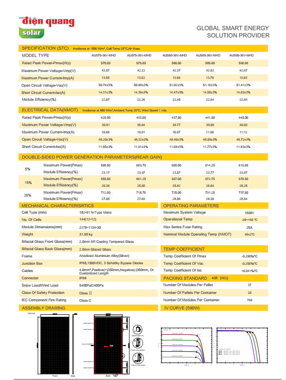 🌞 Tấm pin năng lượng mặt trời Điện Quang AUSTA N-Type 590Wp