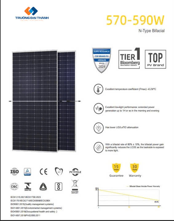 Bảo hành: 15 năm vật lý – 30 năm hiệu suất