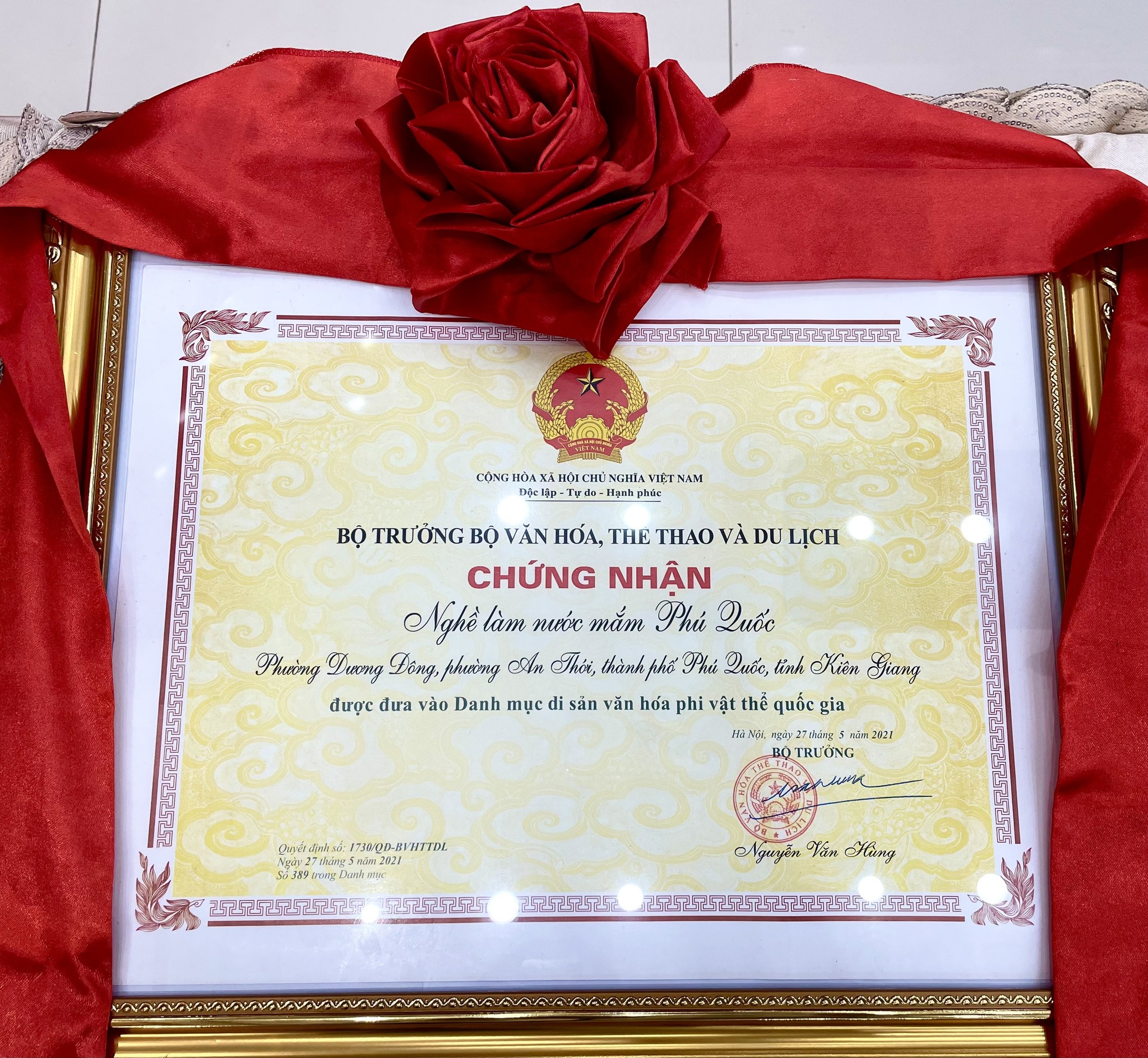 Nghề làm nước mắm Phú Quốc là di sản văn hóa phi vật thể quốc gia