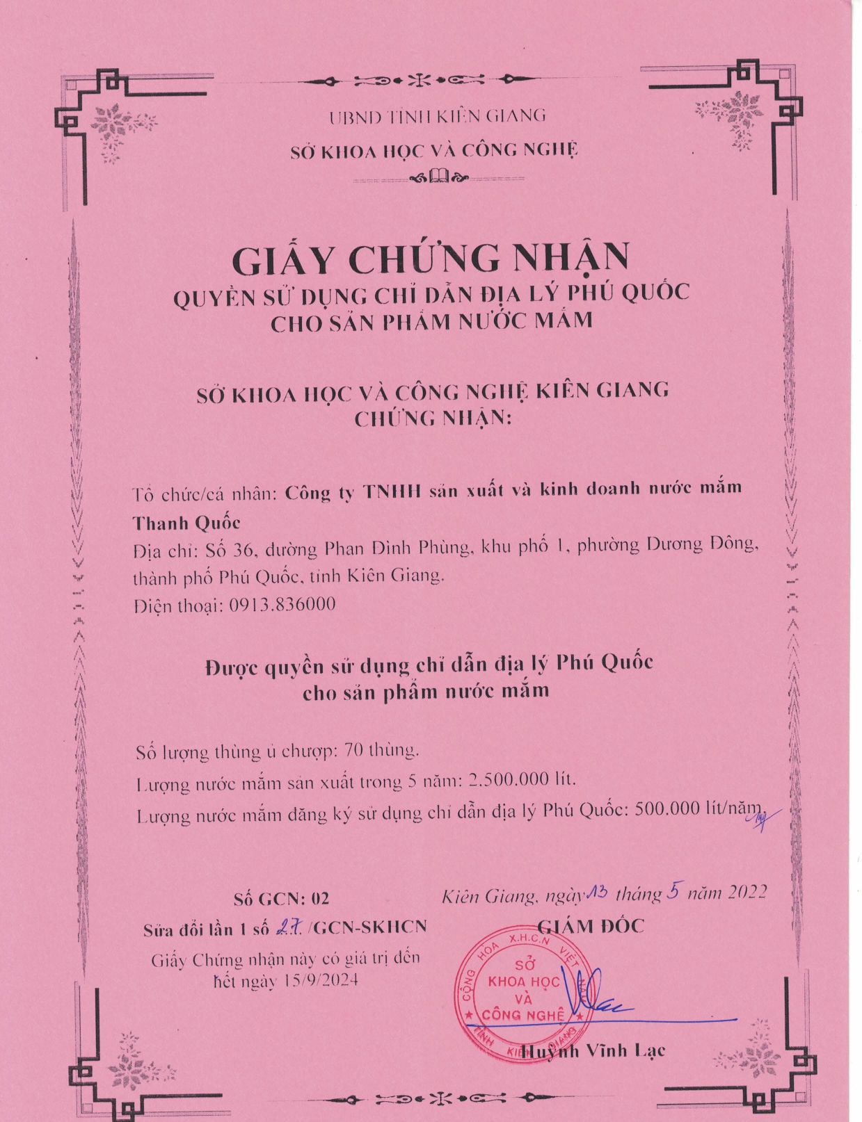 Với 50 năm kinh nghiệm, nước mắm Thanh Quốc tự hào tiên phong mang chỉ dẫn địa lý về với Phú Quốc.