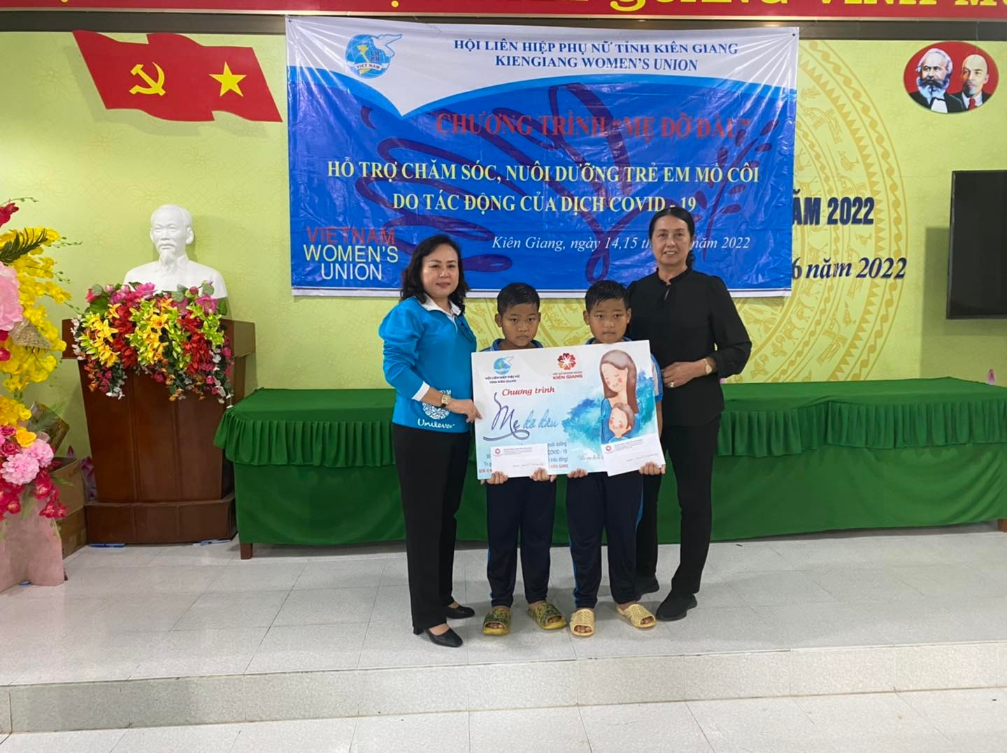 Chương trình "Mẹ đỡ đầu - Chia sẻ yêu thương" do Hội Liên hiệp phụ nữ tỉnh phối hợp với Hội Nữ doanh nhân tỉnh Kiên Giang tổ chức, đã chăm sóc, nuôi dưỡng 31 trẻ em mồ côi có hoàn cảnh khó khăn trên địa bàn các huyện Kiên Lương, An Biên, Hòn Đất, Giồng Riềng và Gò Quao.