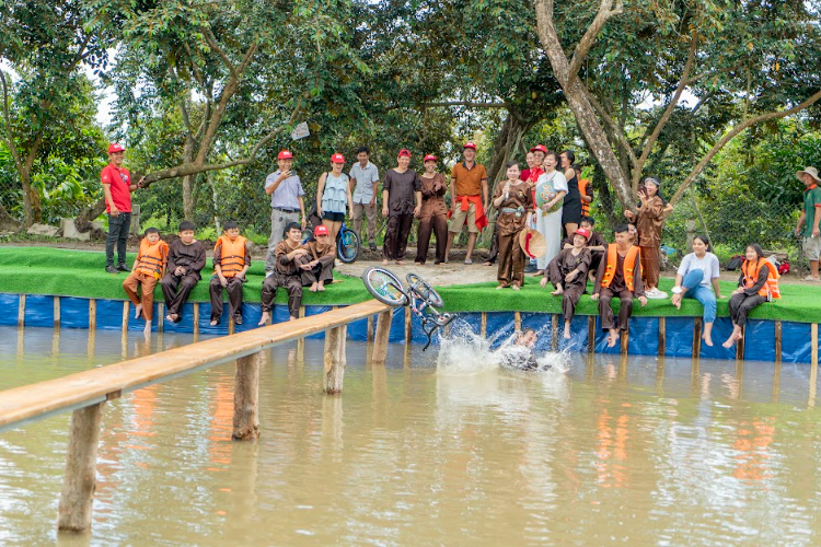 Chạy xe đạp qua cầu ván tại khu du lịch Tuấn Tường là một hoạt động đầy thú vị và thử thách thu hút nhiều du khách yêu thích mạo hiểm Cây cầu ván được thiết kế độc đáo nối liền hai bờ sông tạo nên không gian lý tưởng cho những ai muốn khám phá khả năng