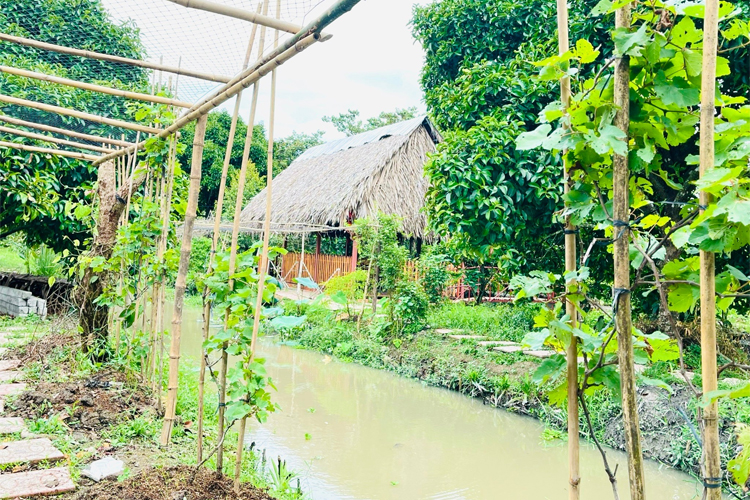 Ốc bươu nướng tiêu là một món dân dã đậm chất Tây Nam Bộ được chế biến công phu mâng lại hương vị độc đáo đang được phục vụ tại vườn sinh thái du lịch Tuấn Tường.