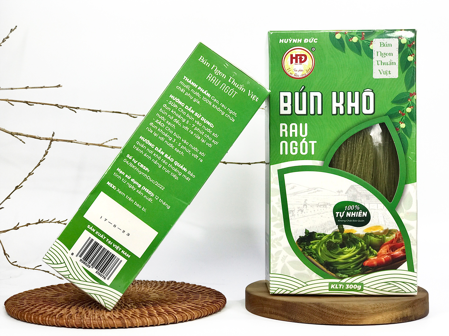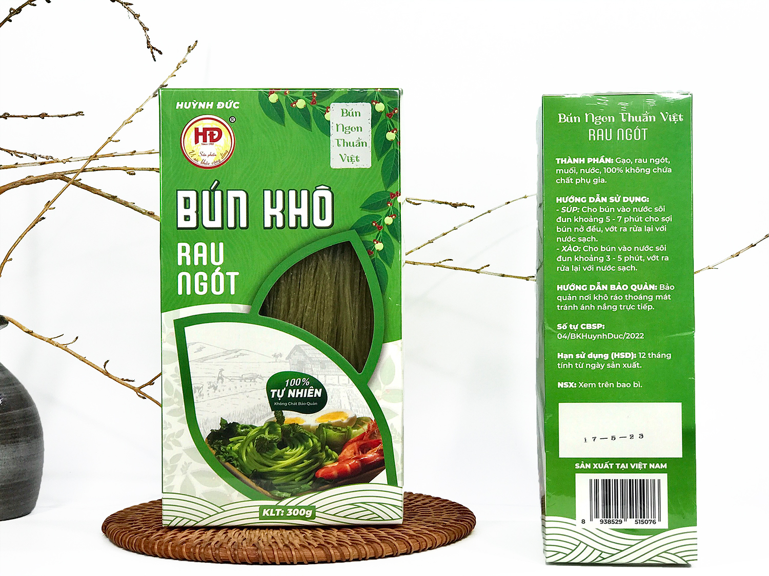 Bún khô Rau Ngót có nguyên liệu chính làm từ gạo rau ngót muối nước đặc biệt là 100 không chứa chất phụ gia Sản phẩm đã đạt được chứng nhập OCOP là sản phẩm đạt an toàn vệ sinh thực phẩm Bún khô rau ngót có màu xanh xanh của rau ngót sợi bún dai