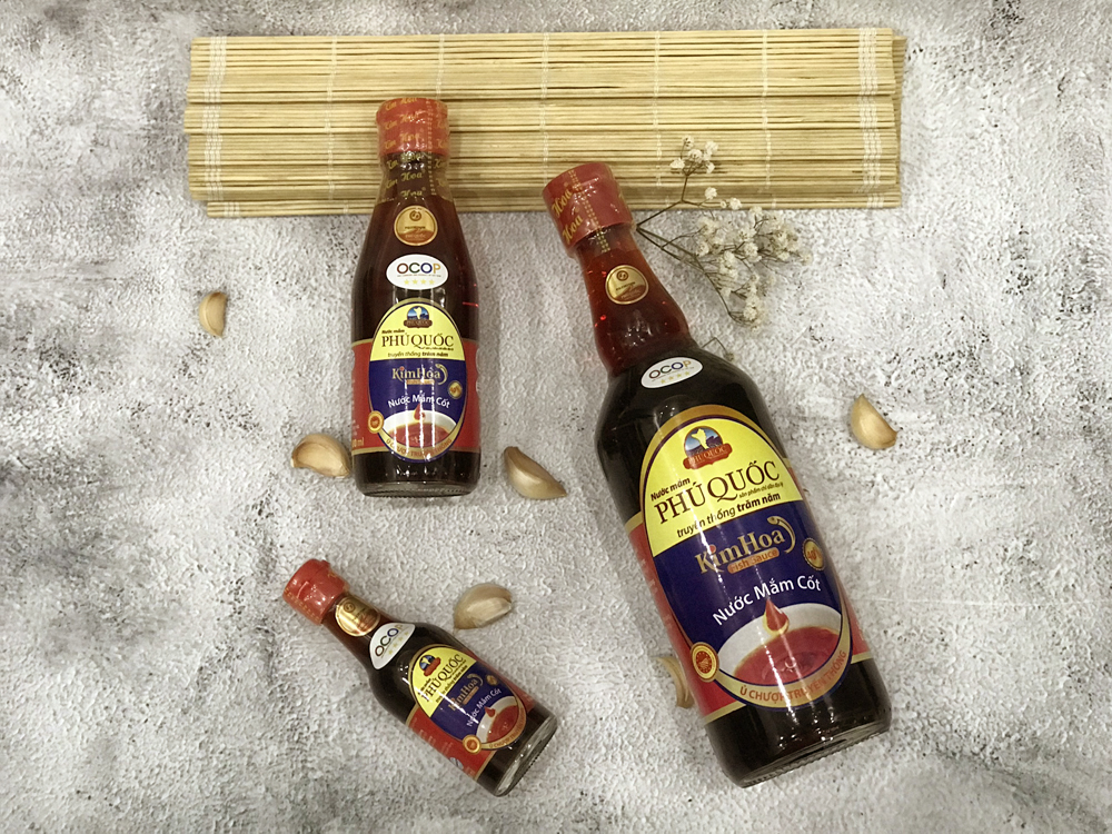 Nước mắm Kim Hoa là dòng nước mắm Cốt đặc biệt được ủ chượp theo phương pháp truyền thống với nguồn nguyên liệu là cá cơm thiên nhiên đến từ vùng biển Phú Quốc Từng giọt nước mắm Kim Hoa đã được chắt lọc ra từ những nguồn nguyên liệu tốt nhất