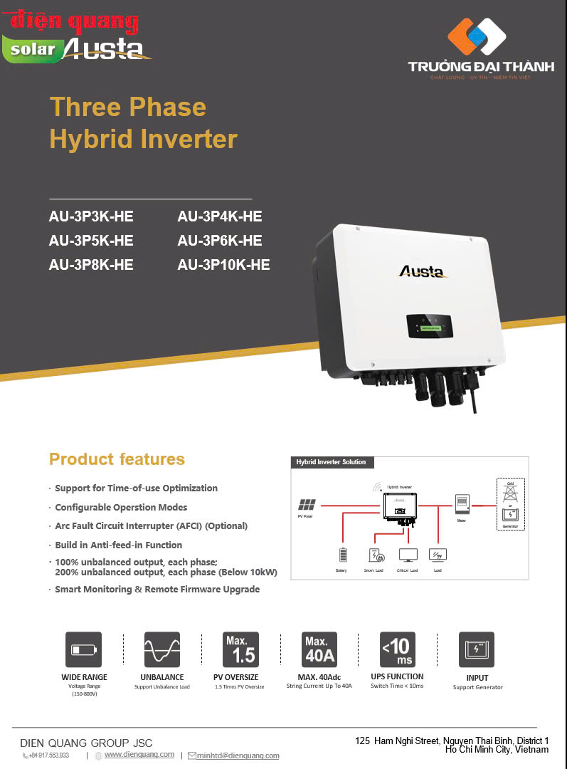 Bộ Biến Tần Hybrid Austa 3P8K (3 Pha, 8Kwp)