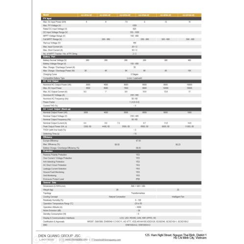 Với công suất mạnh mẽ lên tới 8kWp và 2 kênh MPPT độc lập, sản phẩm không chỉ đáp ứng nhu cầu điện năng cao mà còn giúp tối ưu hóa hiệu suất thu nhận năng lượng. Thiết kế hiện đại, tích hợp nhiều tính năng thông minh giúp bạn yên tâm sử dụng trong nhiều môi trường – từ hộ gia đình, cửa hàng đến doanh nghiệp nhỏ.